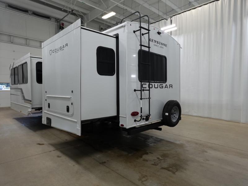 The Keystone Cougar Half-Ton fifth wheel and travel trailers are known as one of America's favorites for a reason! Some of those reasons are the exclusive features that come from Keystone, like the Winegard Air 360+ omni-directional rooftop antenna, the in-floor heating ducts, and the Hyper Deck flooring. The Cougar Half-Ton has a Climate Guard protection package to keep you safe during inclement weather, along with two roof attic vents, PEX plumbing and more. Use the 17" Furrion range with Piezo ignition to create all of those familiar meals from home, and enjoy endless hot showers with the Girard tankless on-demand water heater!