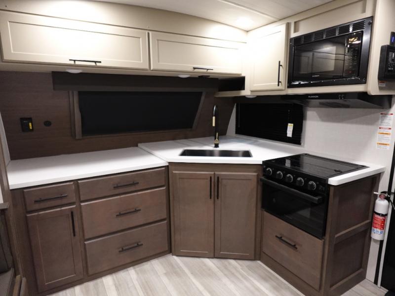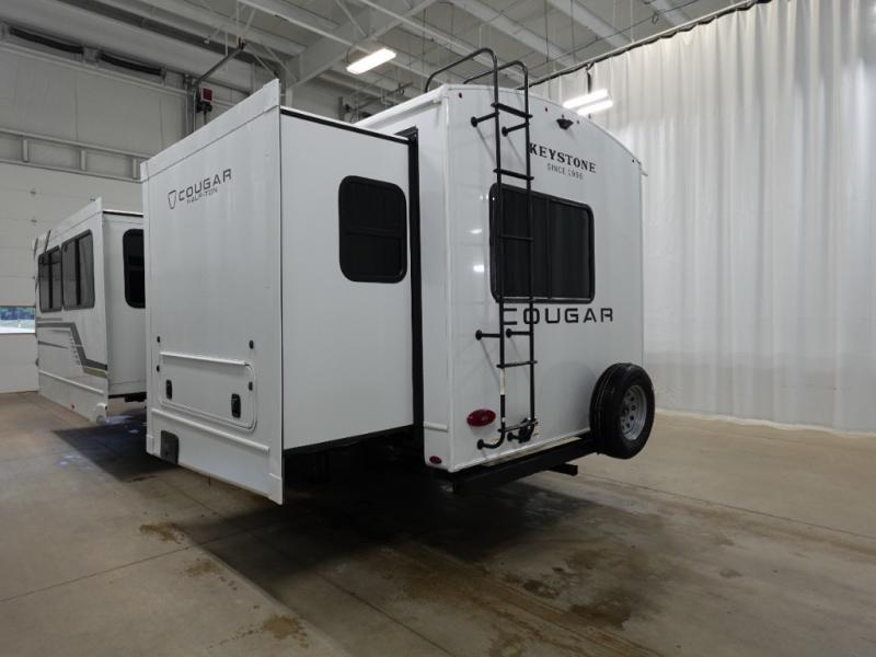 The Keystone Cougar Half-Ton fifth wheel and travel trailers are known as one of America's favorites for a reason! Some of those reasons are the exclusive features that come from Keystone, like the Winegard Air 360+ omni-directional rooftop antenna, the in-floor heating ducts, and the HyperCore composite wall construction with Vixen Fibrogloss high-gloss finish. The Cougar Half-Ton has a Climate Guard protection package with heat-deflecting white sidewalls, two roof attic vents, PEX plumbing and more to enjoy four season camping. Inside, you'll love the dimmable lighting, night roller shades throughout, shower skylight, and bedside USB outlets to keep your electronics charged.