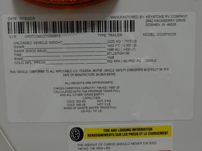 New 2026 Keystone RV Cougar Half-Ton 25FKD Travel Trailer