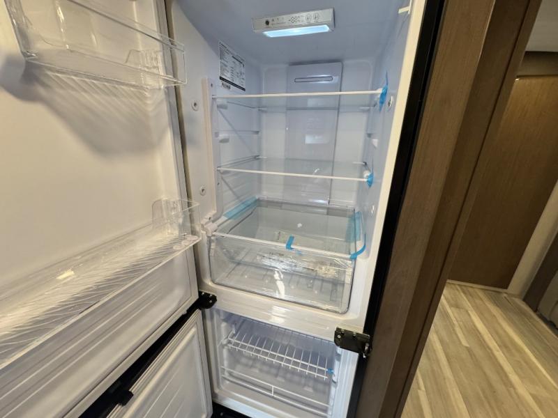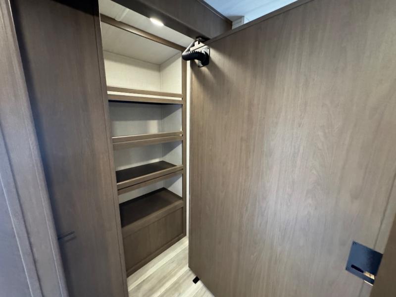 With a queen-size bed and a king bed option, this Cougar Half-Ton travel trailer shows that you can still be comfortable even while you're away from home! The bed slides out to provide more interior space and there is a wardrobe opposite near the private entry door. The main entry up front leads into a spacious combined kitchen and living area with the front kitchen offering plenty of counter space and overhead storage. There is a 12-volt refrigerator to the left of the entry door, and access to a walk-in pantry is right around the corner from the pivoting entertainment center opposite a tri-fold sofa sleeper and booth dinette slide. This unit also features a full-width walk-thru bath giving you plenty of room to shower and change.