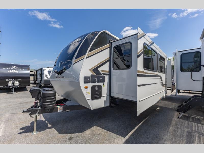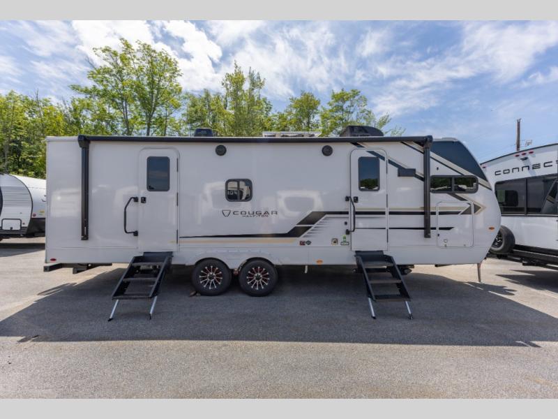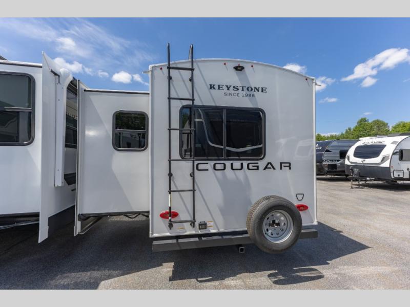 The Keystone Cougar Half-Ton fifth wheel and travel trailers are known as one of America's favorites for a reason! Some of those reasons are the exclusive features that come from Keystone, like the Winegard Air 360+ omni-directional rooftop antenna, the in-floor heating ducts, and the HyperCore composite wall construction with Vixen Fibrogloss high-gloss finish. The Cougar Half-Ton has a Climate Guard protection package with heat-deflecting white sidewalls, two roof attic vents, PEX plumbing and more to enjoy four season camping. Inside, you'll love the dimmable lighting, night roller shades throughout, shower skylight, and bedside USB outlets to keep your electronics charged.