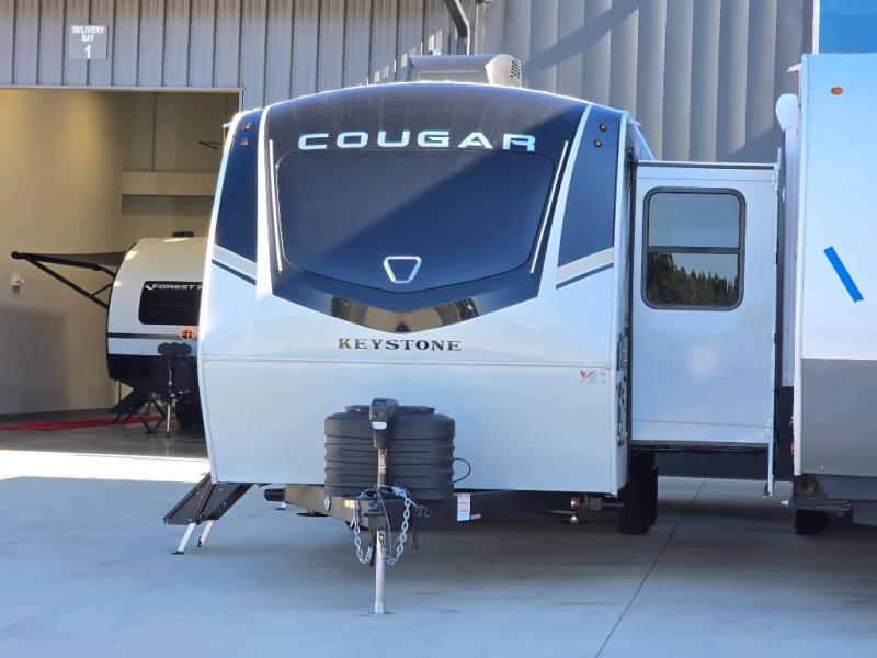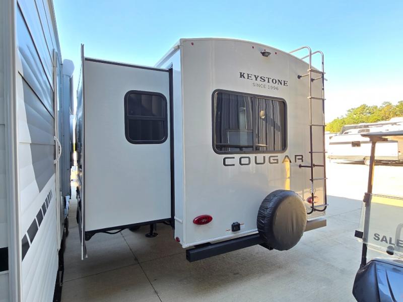 The Keystone Cougar Half-Ton fifth wheel and travel trailers are known as one of America's favorites for a reason! Some of those reasons are the exclusive features that come from Keystone, like the Winegard Air 360+ omni-directional rooftop antenna, the in-floor heating ducts, and the HyperCore composite wall construction with Vixen Fibrogloss high-gloss finish. The Cougar Half-Ton has a Climate Guard protection package with heat-deflecting white sidewalls, two roof attic vents, PEX plumbing and more to enjoy four season camping. Inside, you'll love the dimmable lighting, night roller shades throughout, shower skylight, and bedside USB outlets to keep your electronics charged.