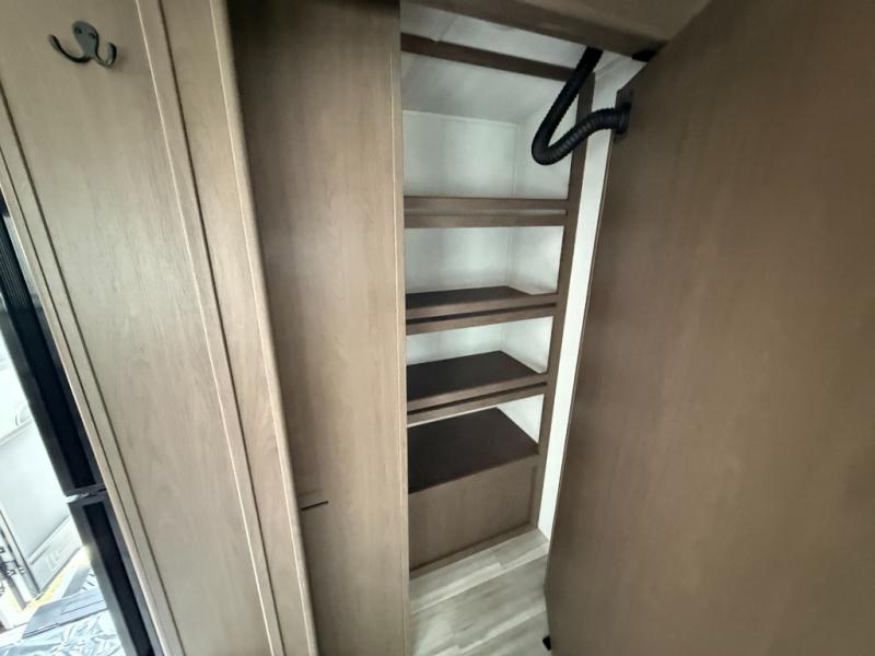 With a queen-size bed and a king bed option, this Cougar Half-Ton travel trailer shows that you can still be comfortable even while you're away from home! The bed slides out to provide more interior space and there is a wardrobe opposite near the private entry door. The main entry up front leads into a spacious combined kitchen and living area with the front kitchen offering plenty of counter space and overhead storage. There is a 12-volt refrigerator to the left of the entry door, and access to a walk-in pantry is right around the corner from the pivoting entertainment center opposite a tri-fold sofa sleeper and booth dinette slide. This unit also features a full-width walk-thru bath giving you plenty of room to shower and change.