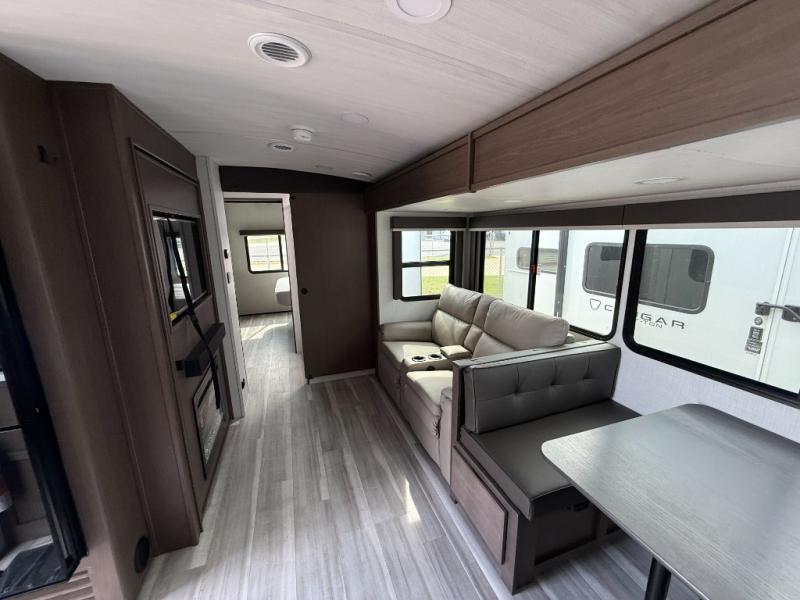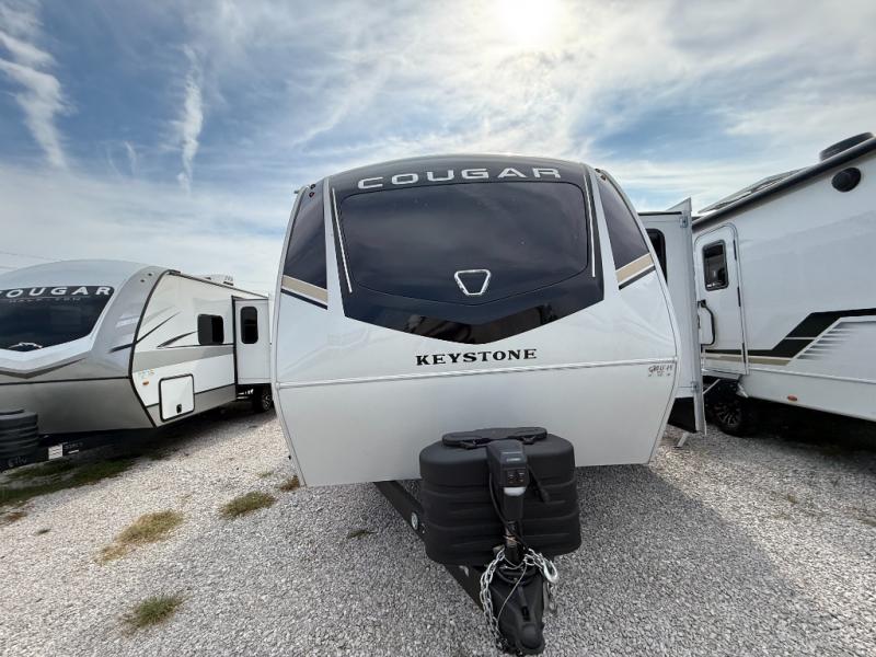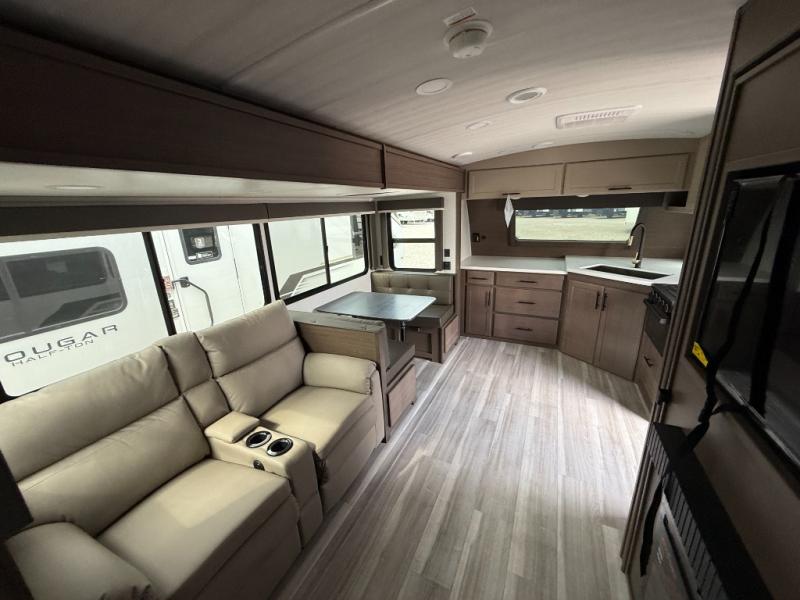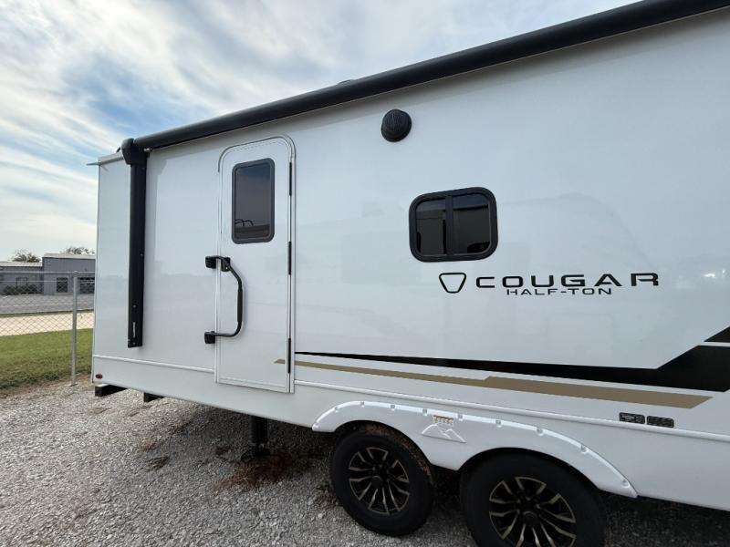 The Keystone Cougar Half-Ton fifth wheel and travel trailers are known as one of America's favorites for a reason! Some of those reasons are the exclusive features that come from Keystone, like the Winegard Air 360+ omni-directional rooftop antenna, the in-floor heating ducts, and the HyperCore composite wall construction with Vixen Fibrogloss high-gloss finish. The Cougar Half-Ton has a Climate Guard protection package with heat-deflecting white sidewalls, two roof attic vents, PEX plumbing and more to enjoy four season camping. Inside, you'll love the dimmable lighting, night roller shades throughout, shower skylight, and bedside USB outlets to keep your electronics charged.