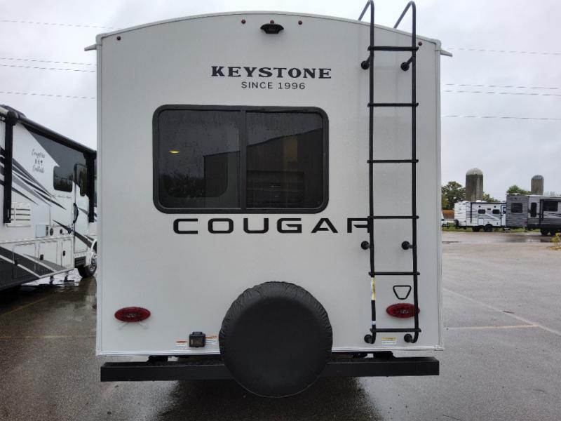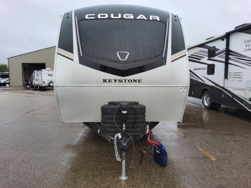 The Keystone Cougar Half-Ton fifth wheel and travel trailers are known as one of America's favorites for a reason! Some of those reasons are the exclusive features that come from Keystone, like the Winegard Air 360+ omni-directional rooftop antenna, the in-floor heating ducts, and the HyperCore composite wall construction with Vixen Fibrogloss high-gloss finish. The Cougar Half-Ton has a Climate Guard protection package with heat-deflecting white sidewalls, two roof attic vents, PEX plumbing and more to enjoy four season camping. Inside, you'll love the dimmable lighting, night roller shades throughout, shower skylight, and bedside USB outlets to keep your electronics charged.