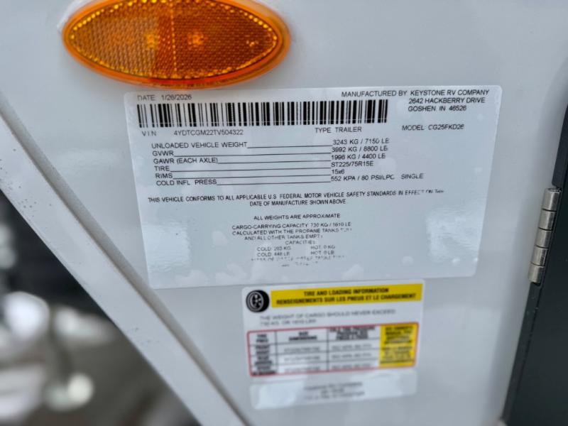 New 2026 Keystone RV Cougar Half-Ton 25FKD Travel Trailer