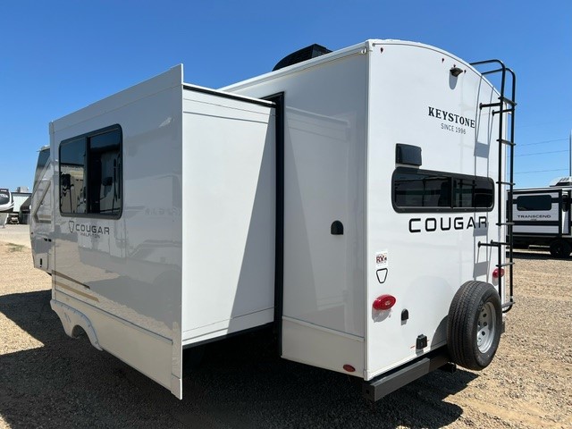 The Keystone Cougar Half-Ton fifth wheel and travel trailers are known as one of America's favorites for a reason! Some of those reasons are the exclusive features that come from Keystone, like the Winegard Air 360+ omni-directional rooftop antenna, the in-floor heating ducts, and the HyperCore composite wall construction with Vixen Fibrogloss high-gloss finish. The Cougar Half-Ton has a Climate Guard protection package with heat-deflecting white sidewalls, two roof attic vents, PEX plumbing and more to enjoy four season camping. Inside, you'll love the dimmable lighting, night roller shades throughout, shower skylight, and bedside USB outlets to keep your electronics charged.