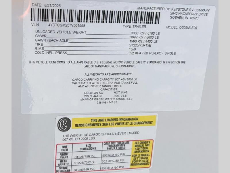 New 2026 Keystone RV Cougar Half-Ton 25MLE Travel Trailer
