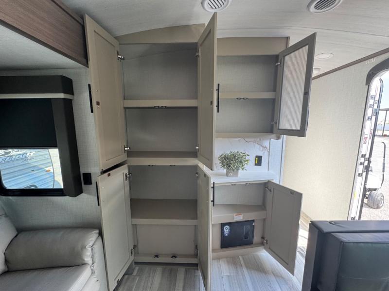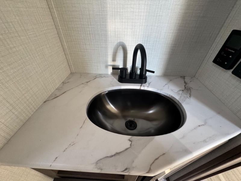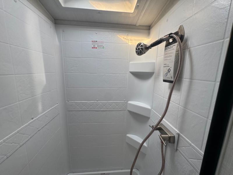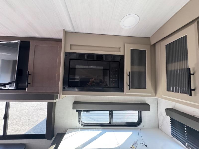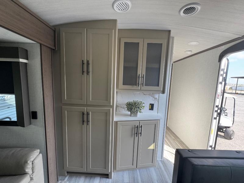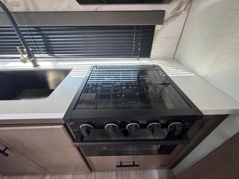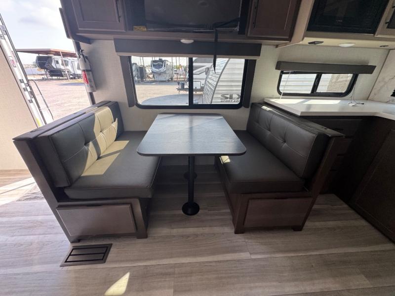 If you're ready for fun summers at the lake, make your adventures complete with this travel trailer in tow. The rear kitchen includes ample counter space to prep burgers, and you can take your preparations outside with the outdoor kitchen prep area. If the weather is nice, you might just want to eat outside too under the 18' power awning, or dine inside at the booth dinette. There is also a tri-fold sleeper sofa within the large slide out and an LED HDTV for movie nights. You'll find plenty of storage throughout, including a kitchen pantry, overhead cabinets, plus dual bedroom nighstands on either side of the king bed!