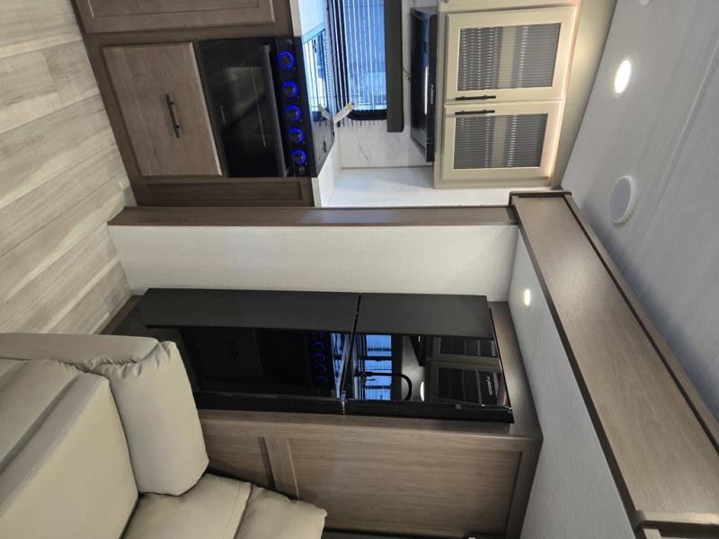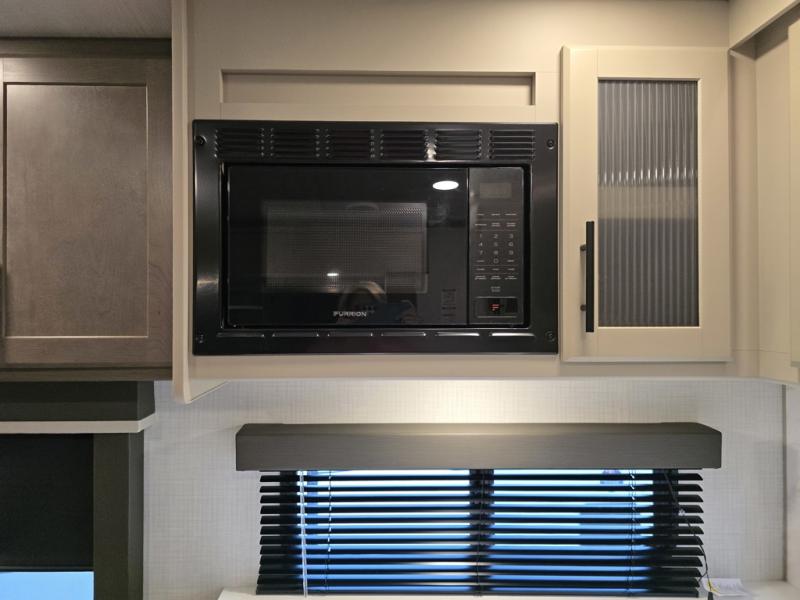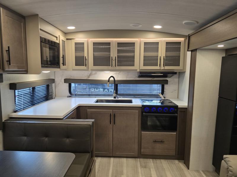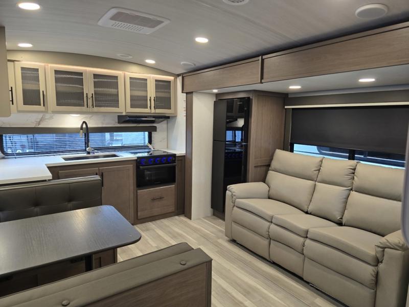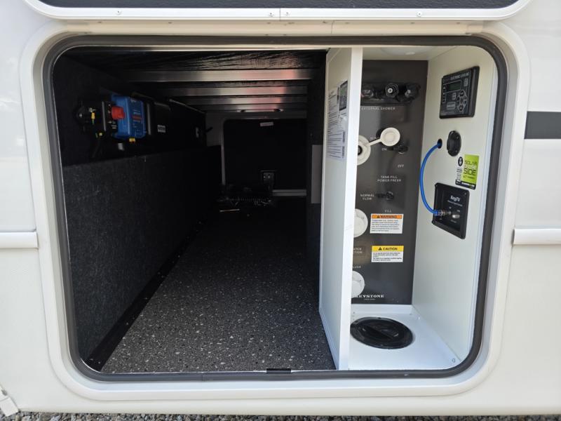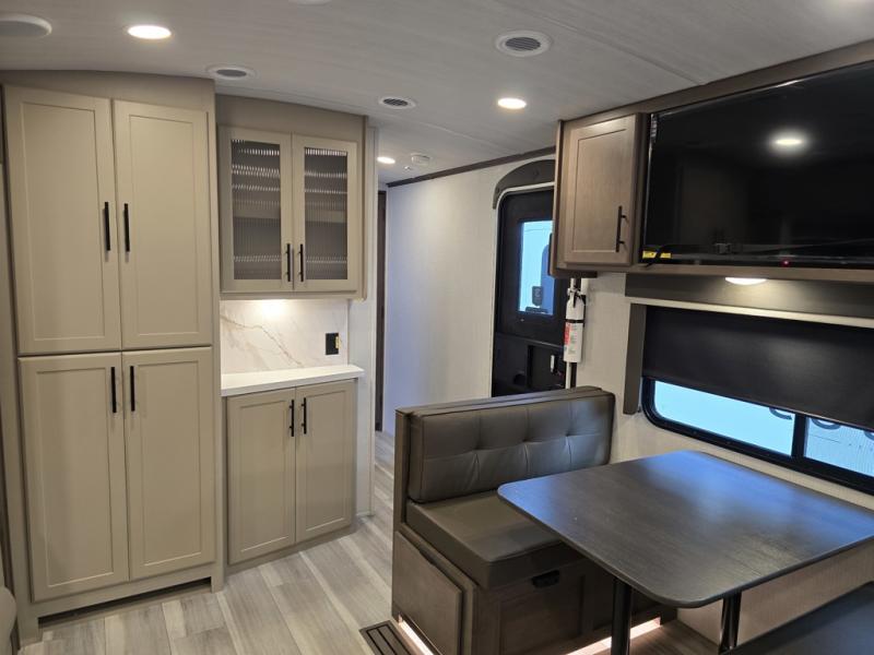 If you're ready for fun summers at the lake, make your adventures complete with this travel trailer in tow. The rear kitchen includes ample counter space to prep burgers, and you can take your preparations outside with the outdoor kitchen prep area. If the weather is nice, you might just want to eat outside too under the 18' power awning, or dine inside at the booth dinette. There is also a tri-fold sleeper sofa within the large slide out and an LED HDTV for movie nights. You'll find plenty of storage throughout, including a kitchen pantry, overhead cabinets, plus dual bedroom nighstands on either side of the king bed!