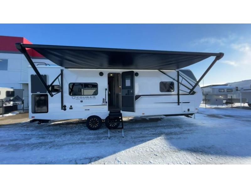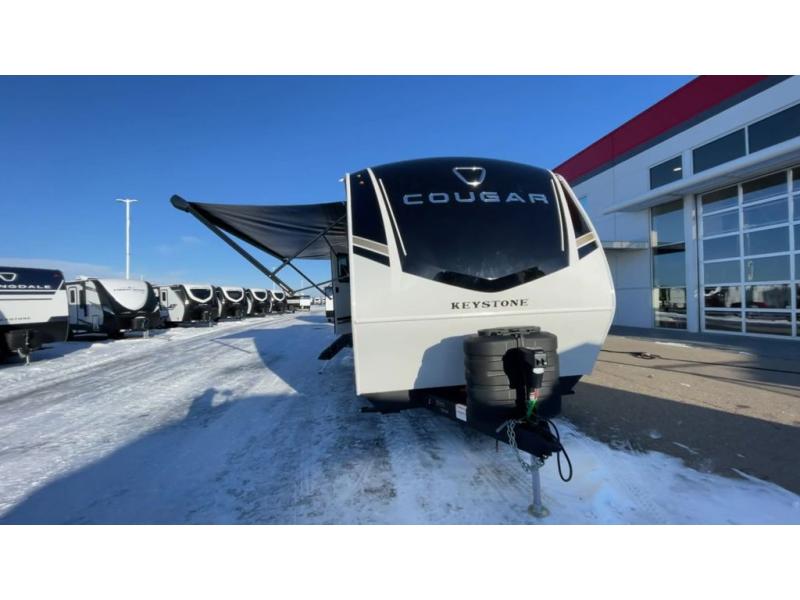 The Keystone Cougar Half-Ton fifth wheel and travel trailers are known as one of America's favorites for a reason! Some of those reasons are the exclusive features that come from Keystone, like the Winegard Air 360+ omni-directional rooftop antenna, the in-floor heating ducts, and the HyperCore composite wall construction with Vixen Fibrogloss high-gloss finish. The Cougar Half-Ton has a Climate Guard protection package with heat-deflecting white sidewalls, two roof attic vents, PEX plumbing and more to enjoy four season camping. Inside, you'll love the dimmable lighting, night roller shades throughout, shower skylight, and bedside USB outlets to keep your electronics charged.