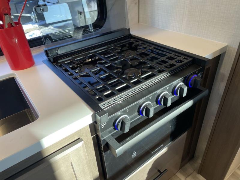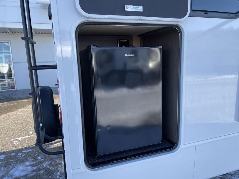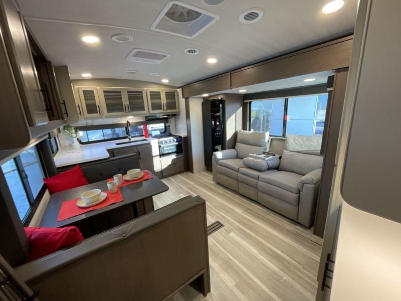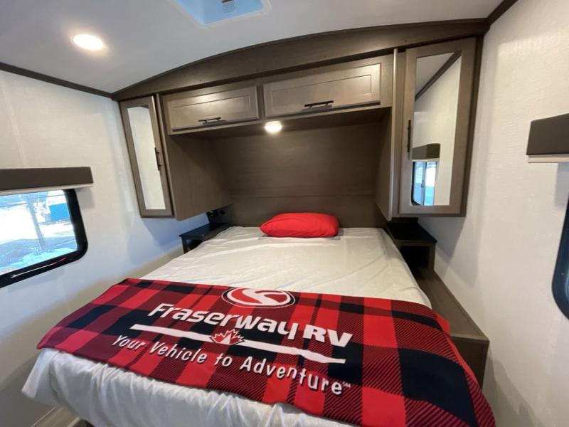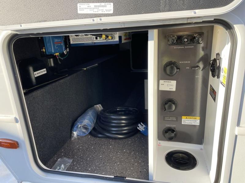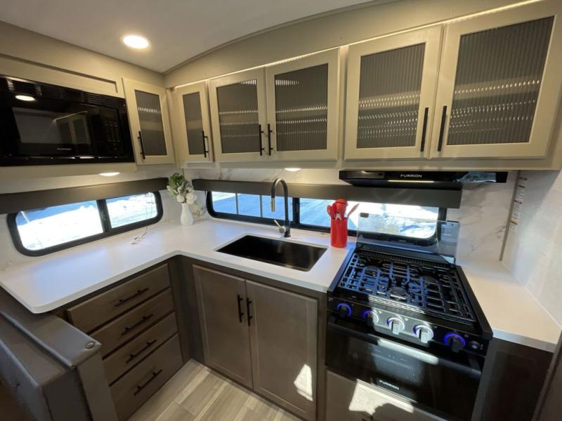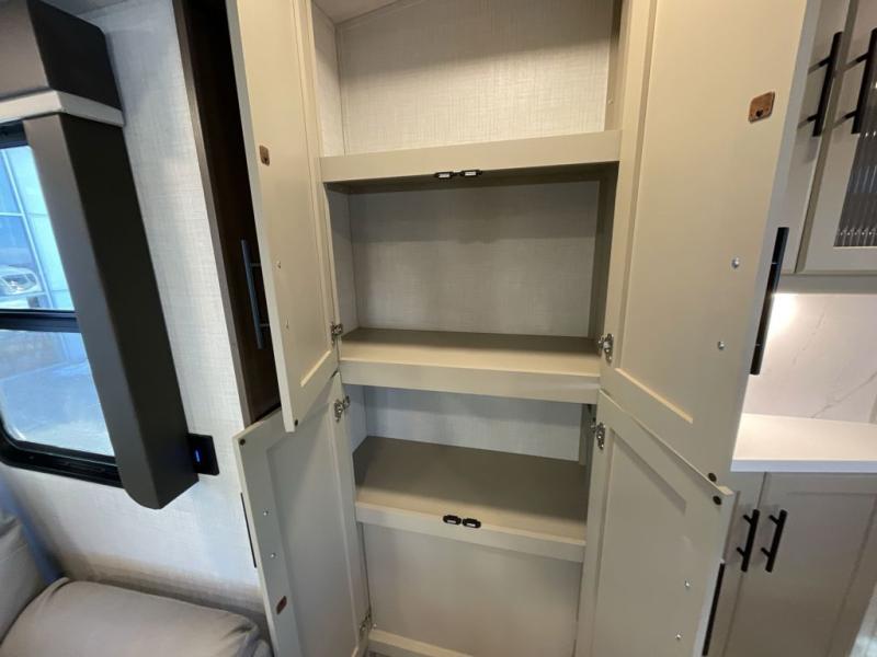 If you're ready for fun summers at the lake, make your adventures complete with this travel trailer in tow. The rear kitchen includes ample counter space to prep burgers, and you can take your preparations outside with the outdoor kitchen prep area. If the weather is nice, you might just want to eat outside too under the 18' power awning, or dine inside at the booth dinette. There is also a tri-fold sleeper sofa within the large slide out and an LED HDTV for movie nights. You'll find plenty of storage throughout, including a kitchen pantry, overhead cabinets, plus dual bedroom nighstands on either side of the king bed!
