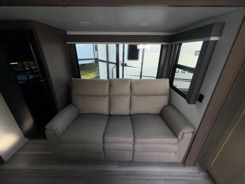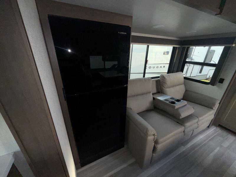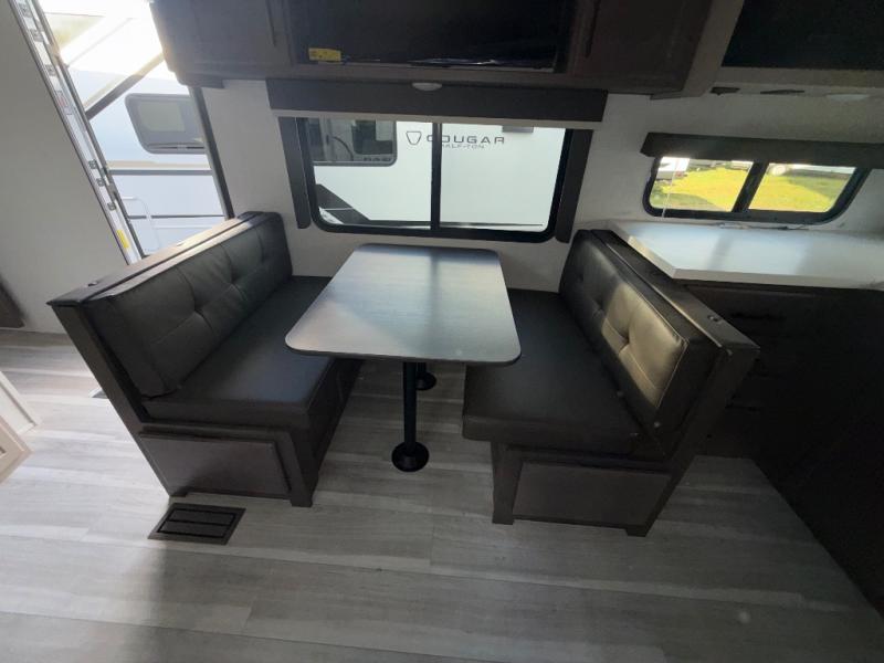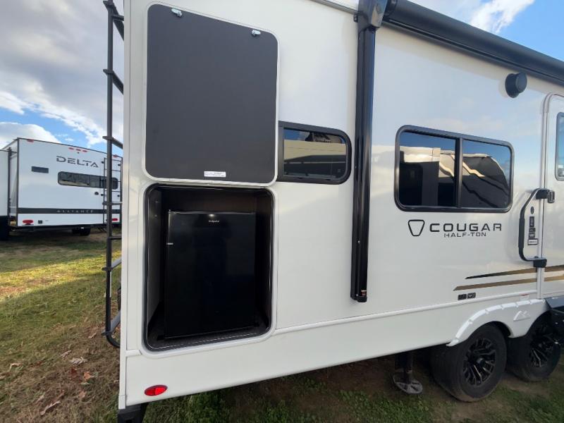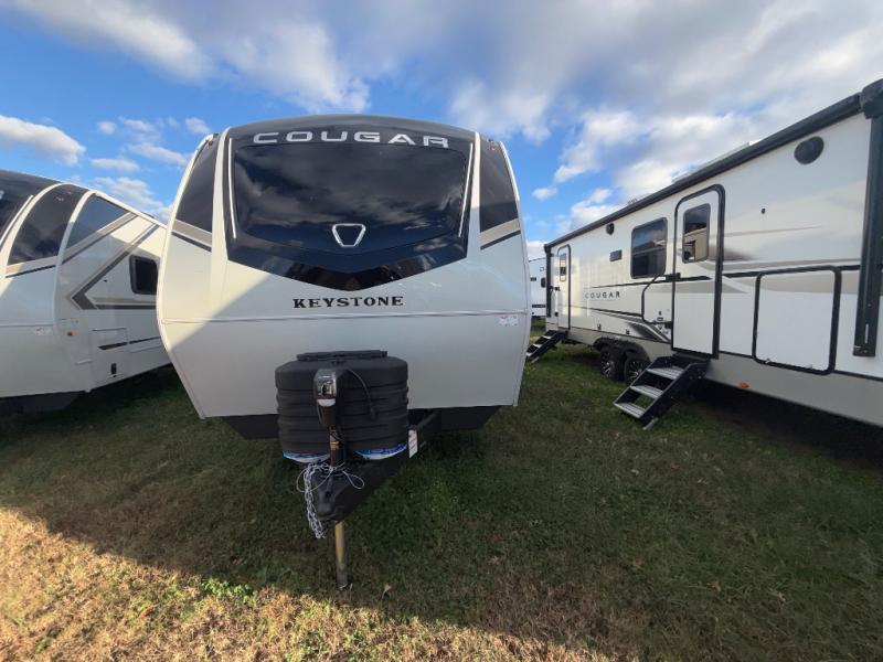 The Keystone Cougar Half-Ton fifth wheel and travel trailers are known as one of America's favorites for a reason! Some of those reasons are the exclusive features that come from Keystone, like the Winegard Air 360+ omni-directional rooftop antenna, the in-floor heating ducts, and the HyperCore composite wall construction with Vixen Fibrogloss high-gloss finish. The Cougar Half-Ton has a Climate Guard protection package with heat-deflecting white sidewalls, two roof attic vents, PEX plumbing and more to enjoy four season camping. Inside, you'll love the dimmable lighting, night roller shades throughout, shower skylight, and bedside USB outlets to keep your electronics charged.
