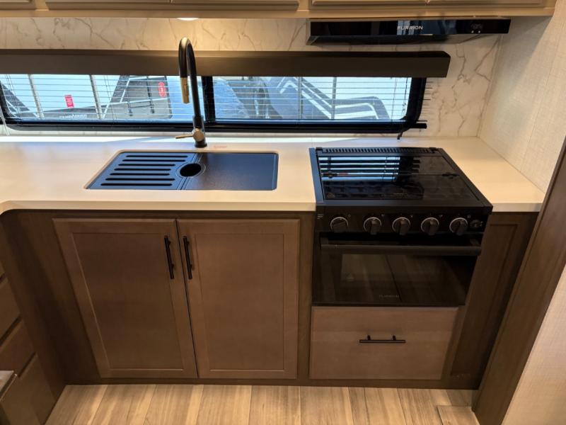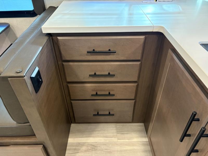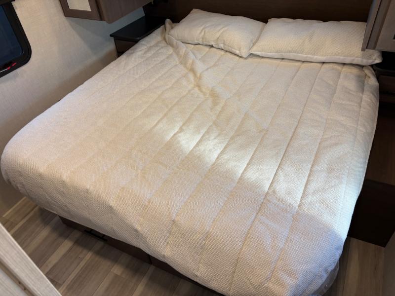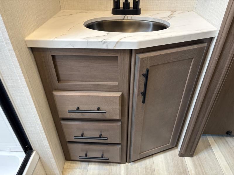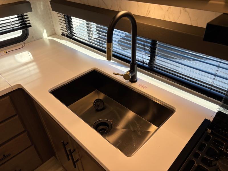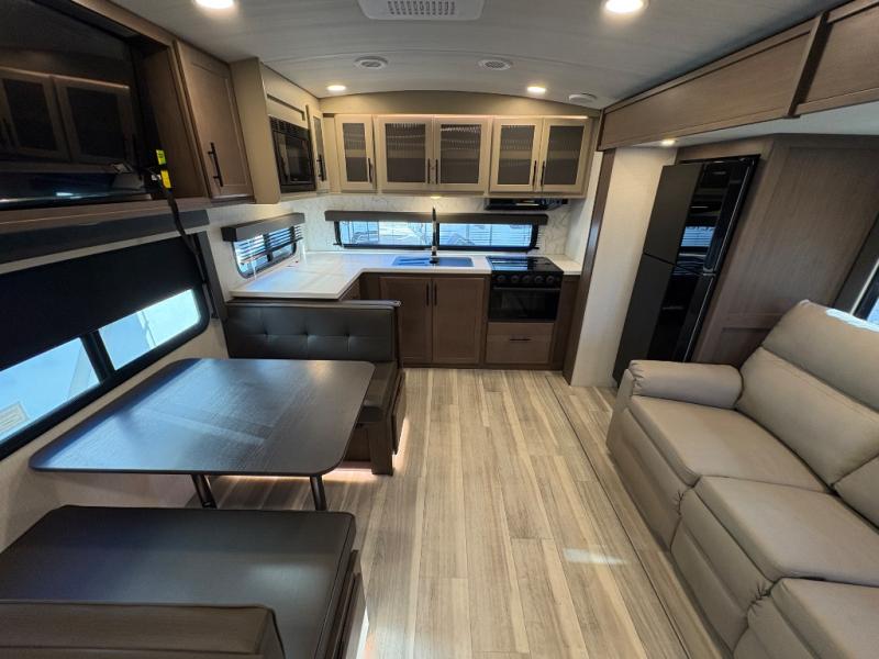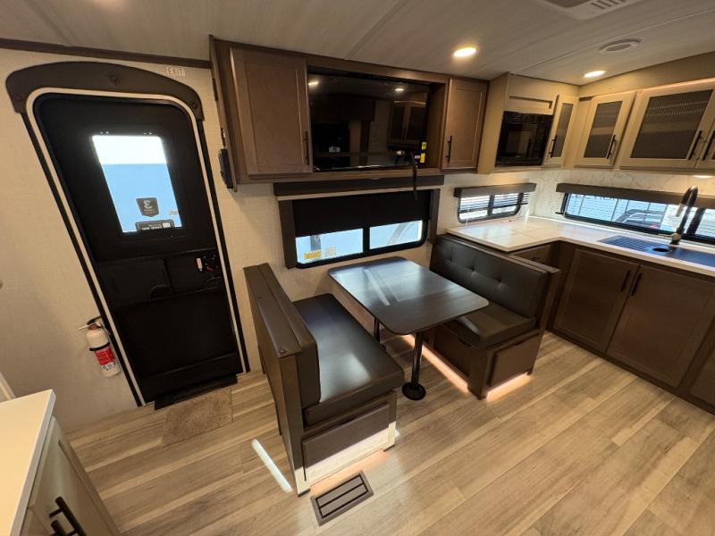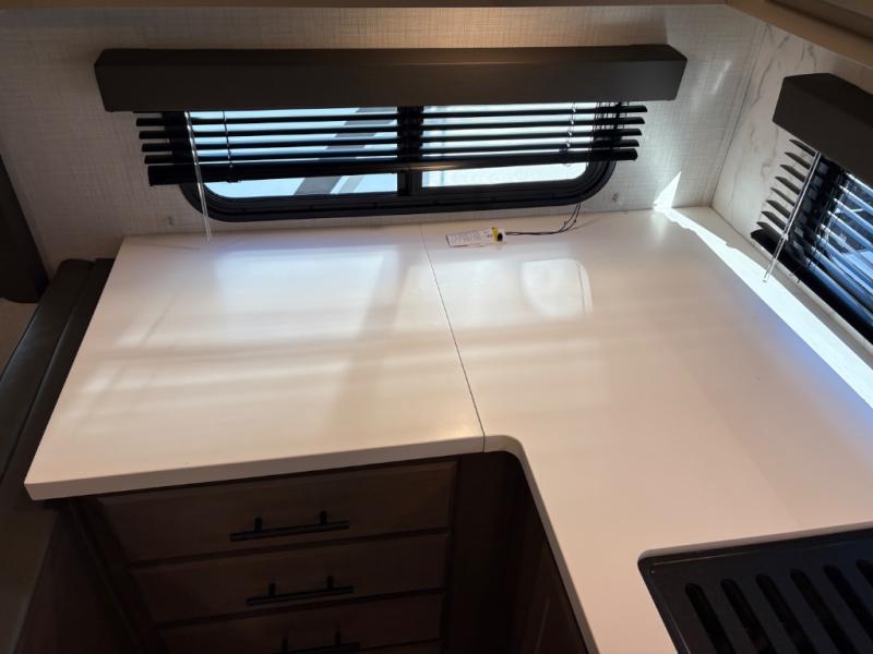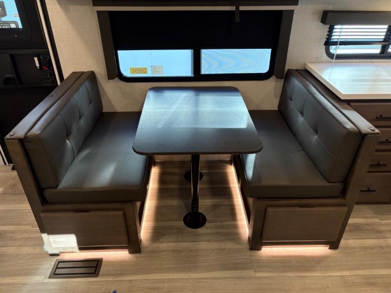 If you're ready for fun summers at the lake, make your adventures complete with this travel trailer in tow. The rear kitchen includes ample counter space to prep burgers, and you can take your preparations outside with the outdoor kitchen prep area. If the weather is nice, you might just want to eat outside too under the 18' power awning, or dine inside at the booth dinette. There is also a tri-fold sleeper sofa within the large slide out and an LED HDTV for movie nights. You'll find plenty of storage throughout, including a kitchen pantry, overhead cabinets, plus dual bedroom nighstands on either side of the king bed!