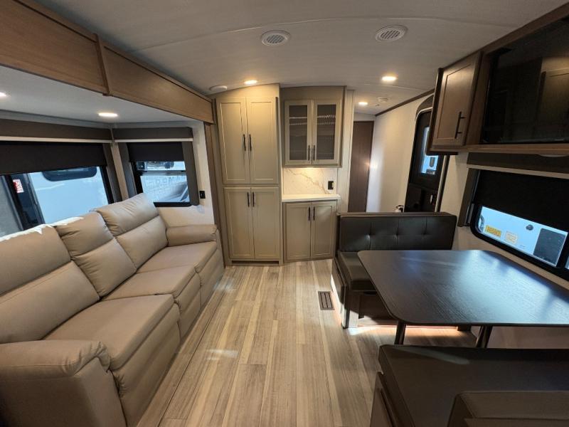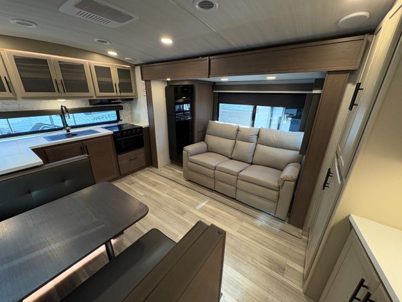 The Keystone Cougar Half-Ton fifth wheel and travel trailers are known as one of America's favorites for a reason! Some of those reasons are the exclusive features that come from Keystone, like the Winegard Air 360+ omni-directional rooftop antenna, the in-floor heating ducts, and the HyperCore composite wall construction with Vixen Fibrogloss high-gloss finish. The Cougar Half-Ton has a Climate Guard protection package with heat-deflecting white sidewalls, two roof attic vents, PEX plumbing and more to enjoy four season camping. Inside, you'll love the dimmable lighting, night roller shades throughout, shower skylight, and bedside USB outlets to keep your electronics charged.