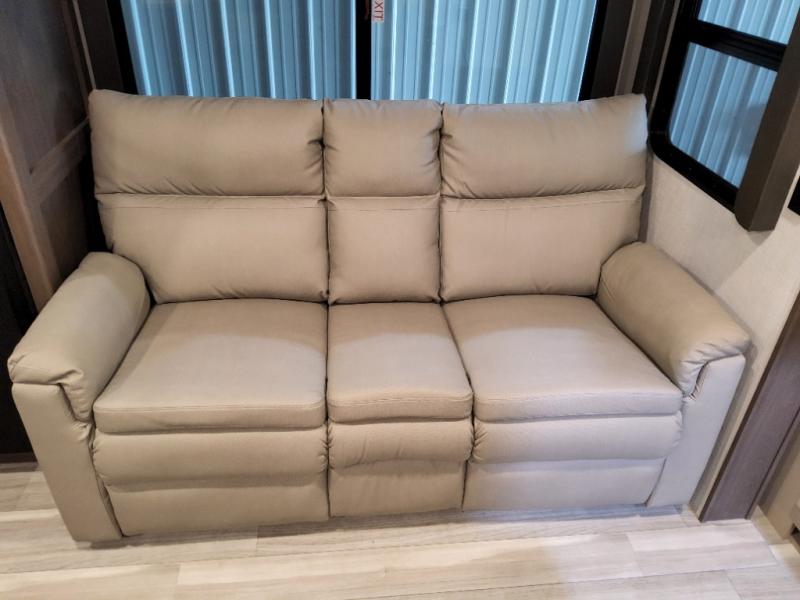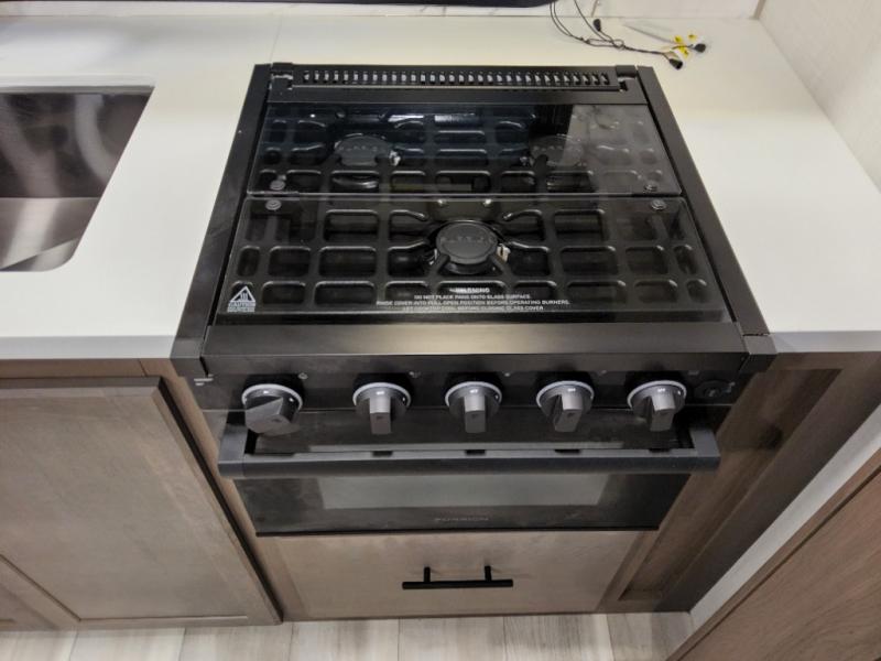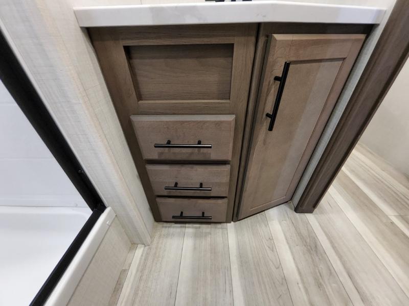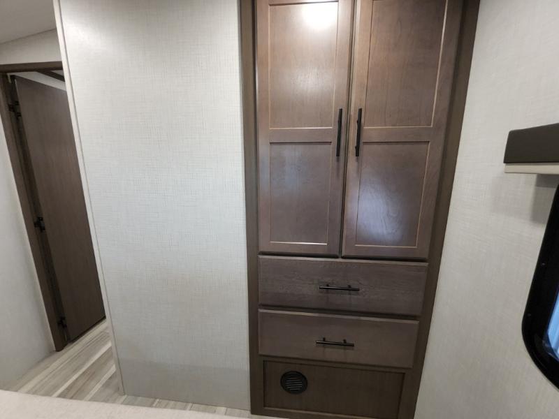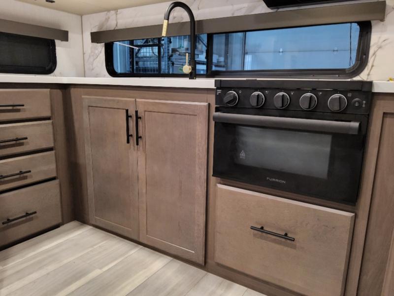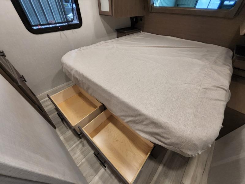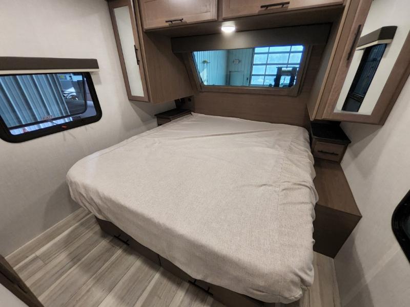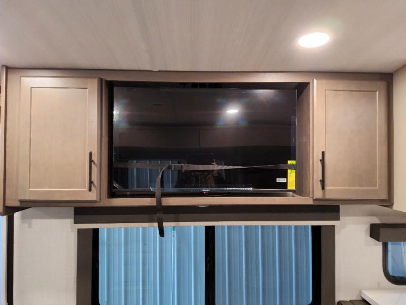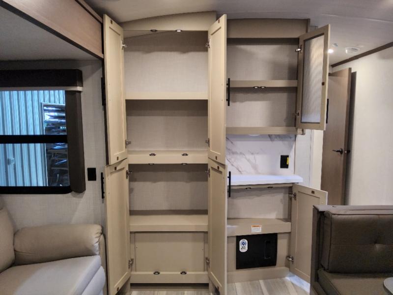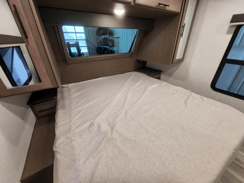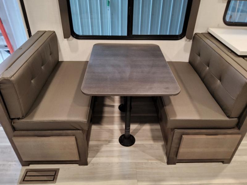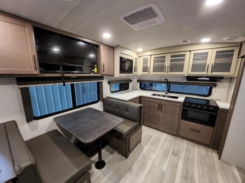 If you're ready for fun summers at the lake, make your adventures complete with this travel trailer in tow. The rear kitchen includes ample counter space to prep burgers, and you can take your preparations outside with the outdoor kitchen prep area. If the weather is nice, you might just want to eat outside too under the 18' power awning, or dine inside at the booth dinette. There is also a tri-fold sleeper sofa within the large slide out and an LED HDTV for movie nights. You'll find plenty of storage throughout, including a kitchen pantry, overhead cabinets, plus dual bedroom nighstands on either side of the king bed!