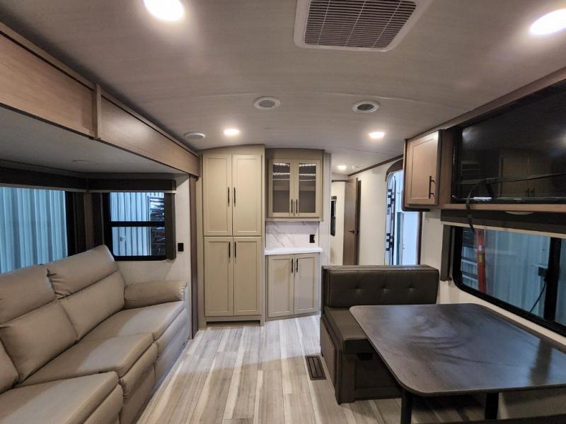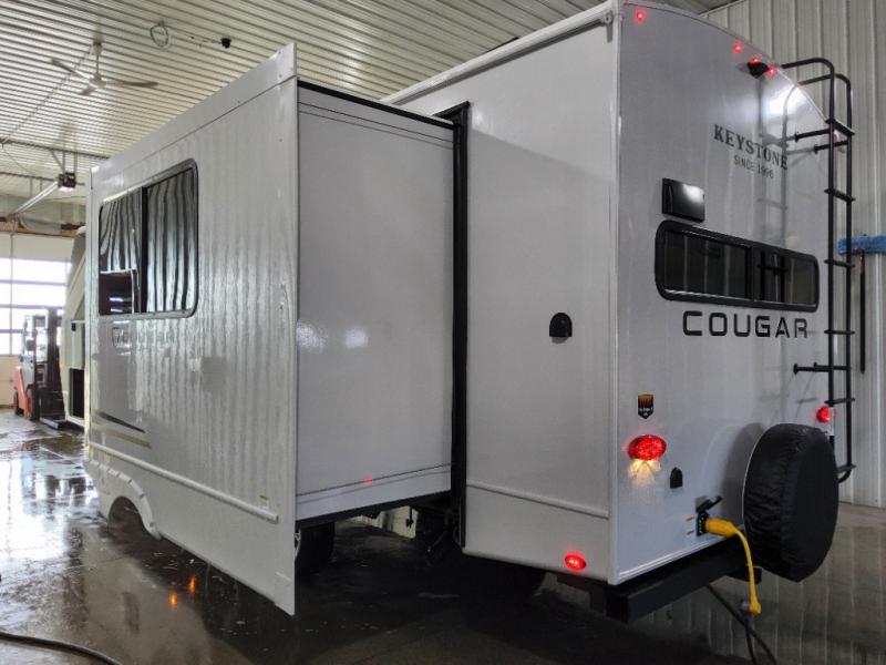 The Keystone Cougar Half-Ton fifth wheel and travel trailers are known as one of America's favorites for a reason! Some of those reasons are the exclusive features that come from Keystone, like the Winegard Air 360+ omni-directional rooftop antenna, the in-floor heating ducts, and the HyperCore composite wall construction with Vixen Fibrogloss high-gloss finish. The Cougar Half-Ton has a Climate Guard protection package with heat-deflecting white sidewalls, two roof attic vents, PEX plumbing and more to enjoy four season camping. Inside, you'll love the dimmable lighting, night roller shades throughout, shower skylight, and bedside USB outlets to keep your electronics charged.
