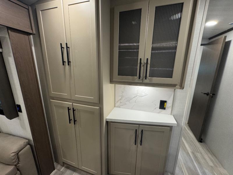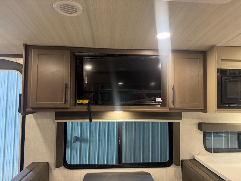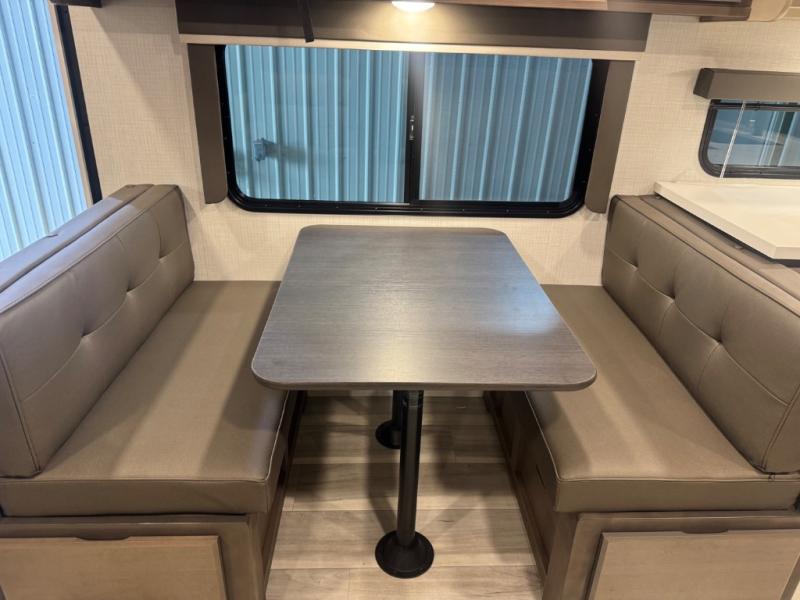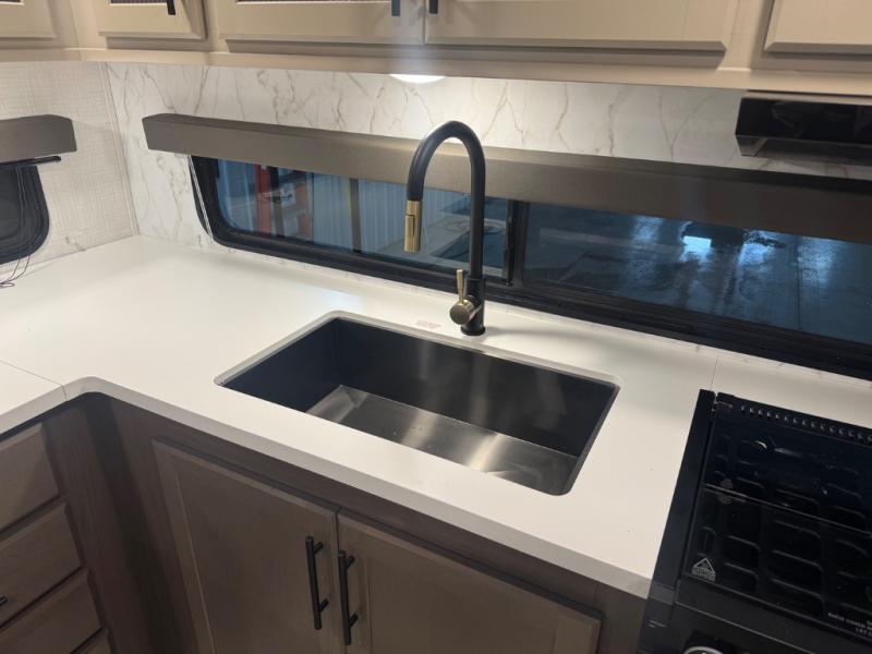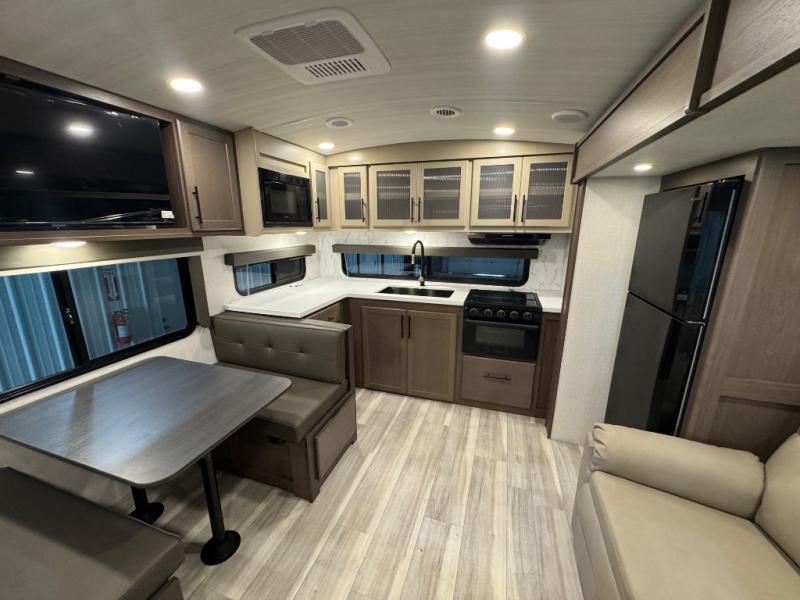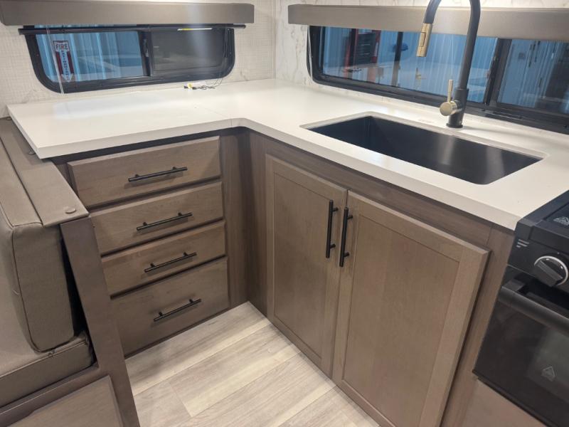 If you're ready for fun summers at the lake, make your adventures complete with this travel trailer in tow. The rear kitchen includes ample counter space to prep burgers, and you can take your preparations outside with the outdoor kitchen prep area. If the weather is nice, you might just want to eat outside too under the 18' power awning, or dine inside at the booth dinette. There is also a tri-fold sleeper sofa within the large slide out and an LED HDTV for movie nights. You'll find plenty of storage throughout, including a kitchen pantry, overhead cabinets, plus dual bedroom nighstands on either side of the king bed!