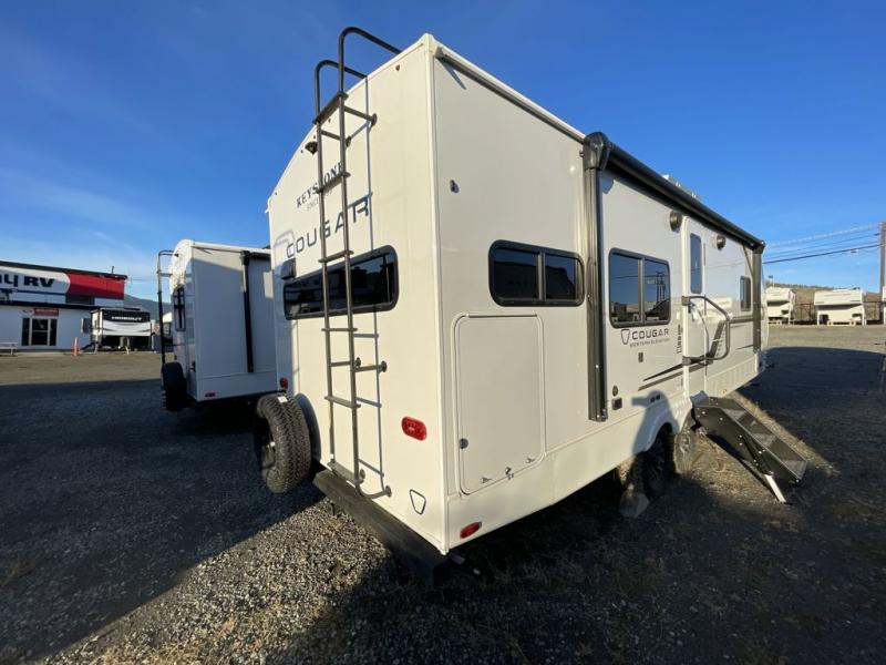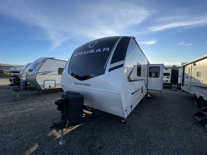 The Keystone Cougar Half-Ton fifth wheel and travel trailers are known as one of America's favorites for a reason! Some of those reasons are the exclusive features that come from Keystone, like the Winegard Air 360+ omni-directional rooftop antenna, the in-floor heating ducts, and the HyperCore composite wall construction with Vixen Fibrogloss high-gloss finish. The Cougar Half-Ton has a Climate Guard protection package with heat-deflecting white sidewalls, two roof attic vents, PEX plumbing and more to enjoy four season camping. Inside, you'll love the dimmable lighting, night roller shades throughout, shower skylight, and bedside USB outlets to keep your electronics charged.