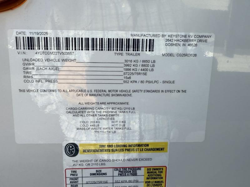 New 2026 Keystone RV Cougar Half-Ton 25RDS Travel Trailer