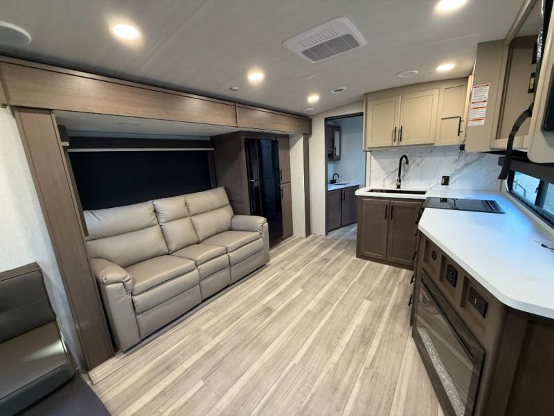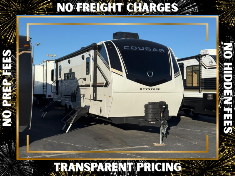 The Keystone Cougar Half-Ton fifth wheel and travel trailers are known as one of America's favorites for a reason! Some of those reasons are the exclusive features that come from Keystone, like the Winegard Air 360+ omni-directional rooftop antenna, the in-floor heating ducts, and the HyperCore composite wall construction with Vixen Fibrogloss high-gloss finish. The Cougar Half-Ton has a Climate Guard protection package with heat-deflecting white sidewalls, two roof attic vents, PEX plumbing and more to enjoy four season camping. Inside, you'll love the dimmable lighting, night roller shades throughout, shower skylight, and bedside USB outlets to keep your electronics charged.