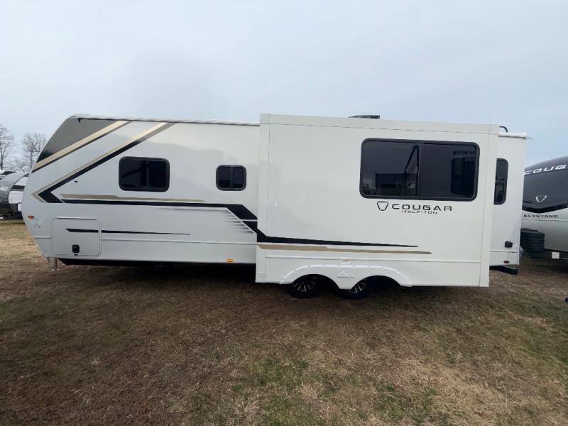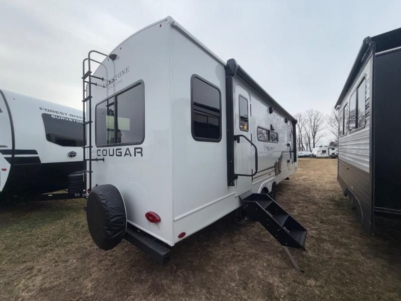 The Keystone Cougar Half-Ton fifth wheel and travel trailers are known as one of America's favorites for a reason! Some of those reasons are the exclusive features that come from Keystone, like the Winegard Air 360+ omni-directional rooftop antenna, the in-floor heating ducts, and the HyperCore composite wall construction with Vixen Fibrogloss high-gloss finish. The Cougar Half-Ton has a Climate Guard protection package with heat-deflecting white sidewalls, two roof attic vents, PEX plumbing and more to enjoy four season camping. Inside, you'll love the dimmable lighting, night roller shades throughout, shower skylight, and bedside USB outlets to keep your electronics charged.