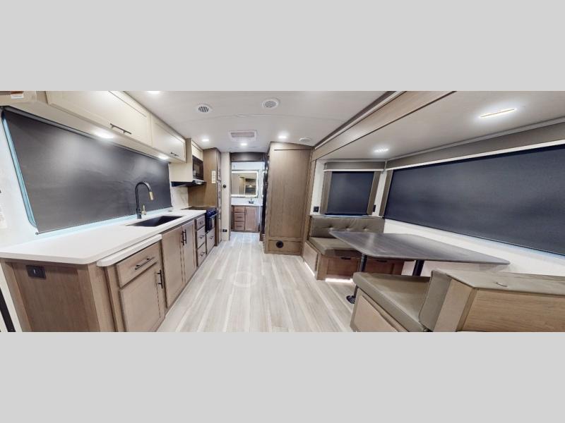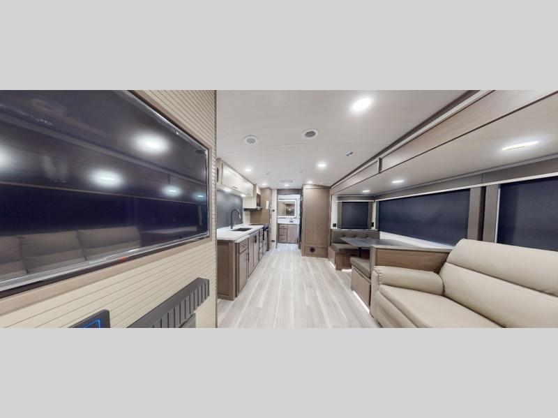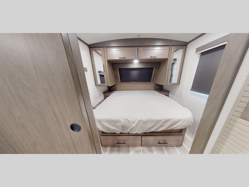 The Keystone Cougar Half-Ton fifth wheel and travel trailers are known as one of America's favorites for a reason! Some of those reasons are the exclusive features that come from Keystone, like the Winegard Air 360+ omni-directional rooftop antenna, the in-floor heating ducts, and the HyperCore composite wall construction with Vixen Fibrogloss high-gloss finish. The Cougar Half-Ton has a Climate Guard protection package with heat-deflecting white sidewalls, two roof attic vents, PEX plumbing and more to enjoy four season camping. Inside, you'll love the dimmable lighting, night roller shades throughout, shower skylight, and bedside USB outlets to keep your electronics charged.