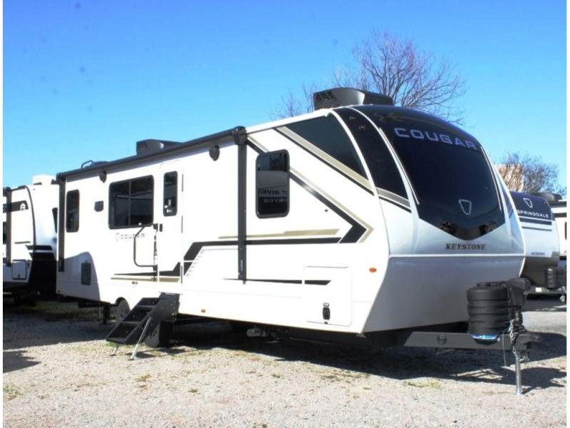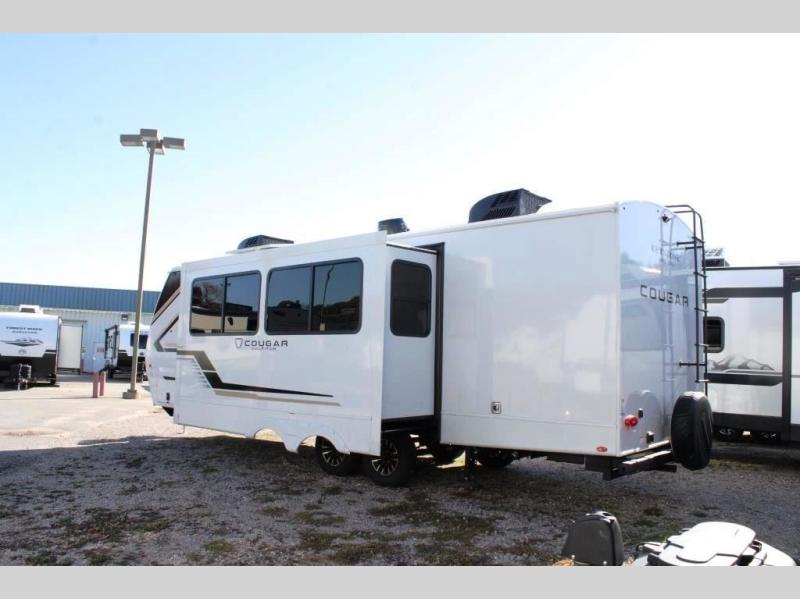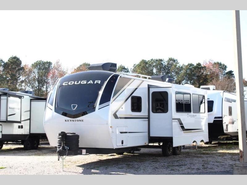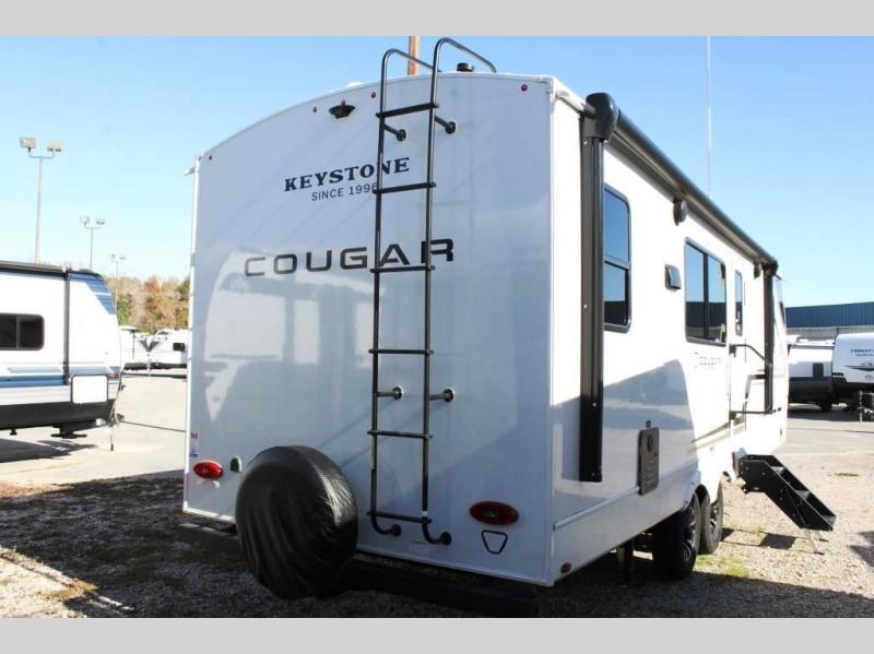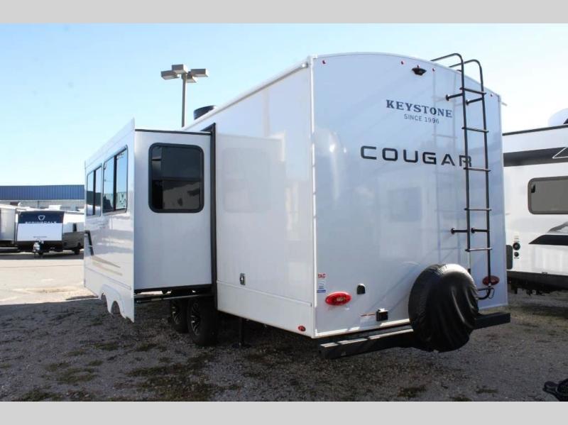 The Keystone Cougar Half-Ton fifth wheel and travel trailers are known as one of America's favorites for a reason! Some of those reasons are the exclusive features that come from Keystone, like the Winegard Air 360+ omni-directional rooftop antenna, the in-floor heating ducts, and the HyperCore composite wall construction with Vixen Fibrogloss high-gloss finish. The Cougar Half-Ton has a Climate Guard protection package with heat-deflecting white sidewalls, two roof attic vents, PEX plumbing and more to enjoy four season camping. Inside, you'll love the dimmable lighting, night roller shades throughout, shower skylight, and bedside USB outlets to keep your electronics charged.