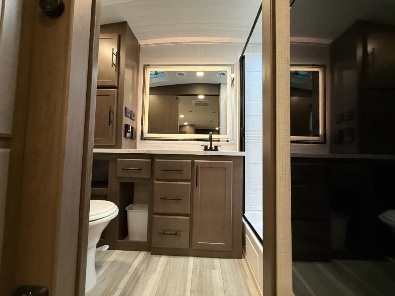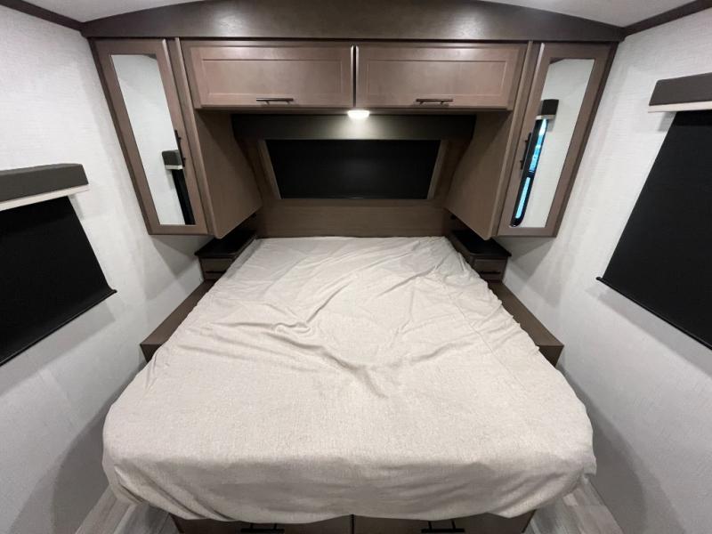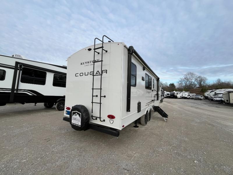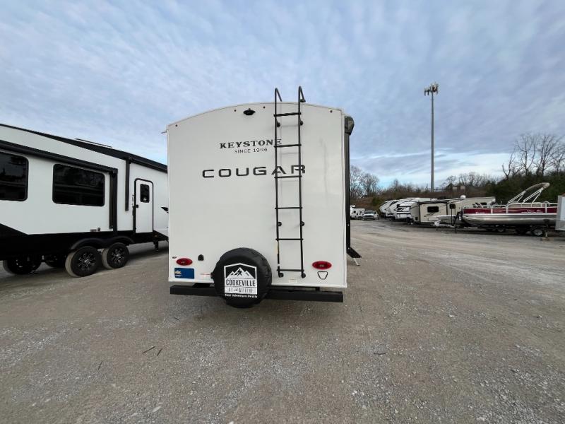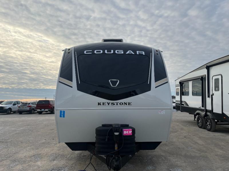 The Keystone Cougar Half-Ton fifth wheel and travel trailers are known as one of America's favorites for a reason! Some of those reasons are the exclusive features that come from Keystone, like the Winegard Air 360+ omni-directional rooftop antenna, the in-floor heating ducts, and the HyperCore composite wall construction with Vixen Fibrogloss high-gloss finish. The Cougar Half-Ton has a Climate Guard protection package with heat-deflecting white sidewalls, two roof attic vents, PEX plumbing and more to enjoy four season camping. Inside, you'll love the dimmable lighting, night roller shades throughout, shower skylight, and bedside USB outlets to keep your electronics charged.