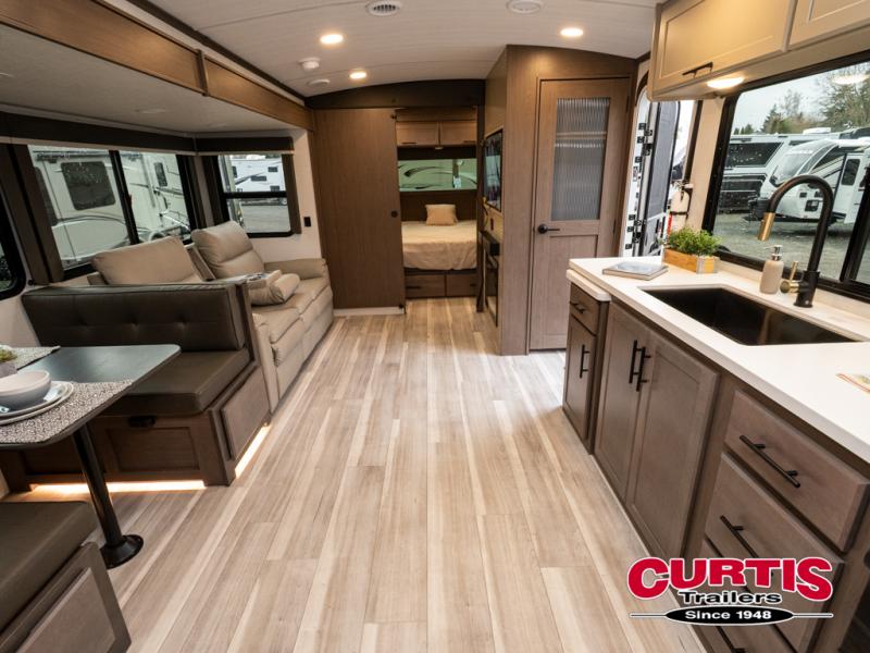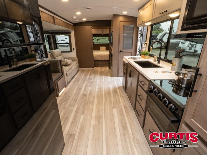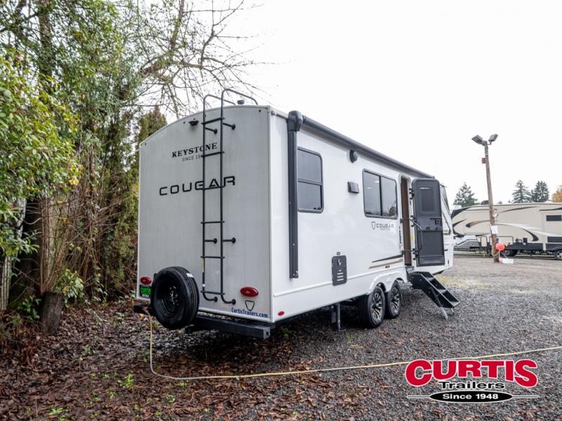 The Keystone Cougar Half-Ton fifth wheel and travel trailers are known as one of America's favorites for a reason! Some of those reasons are the exclusive features that come from Keystone, like the Winegard Air 360+ omni-directional rooftop antenna, the in-floor heating ducts, and the HyperCore composite wall construction with Vixen Fibrogloss high-gloss finish. The Cougar Half-Ton has a Climate Guard protection package with heat-deflecting white sidewalls, two roof attic vents, PEX plumbing and more to enjoy four season camping. Inside, you'll love the dimmable lighting, night roller shades throughout, shower skylight, and bedside USB outlets to keep your electronics charged.
