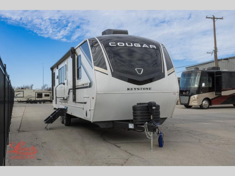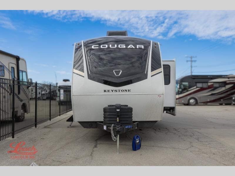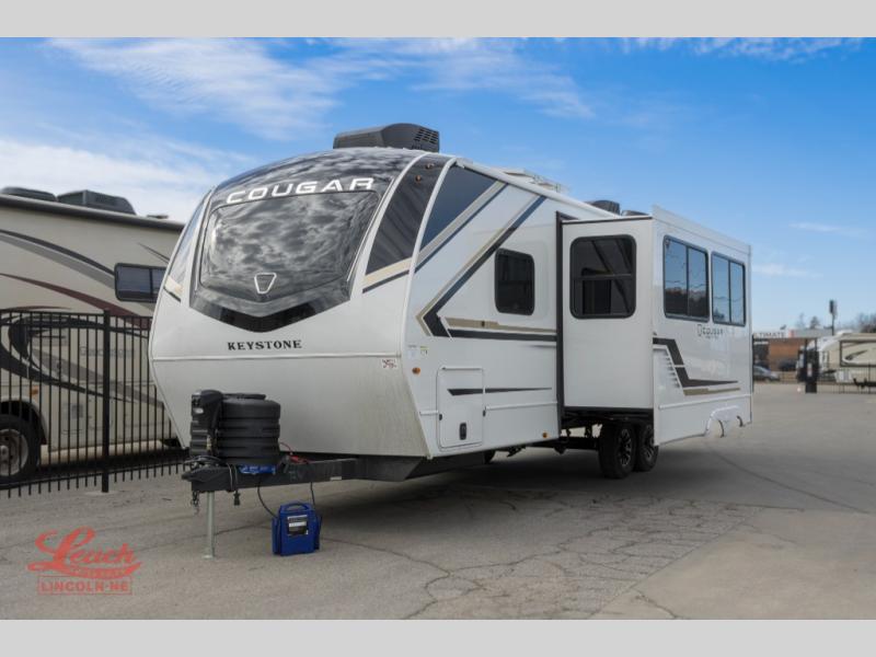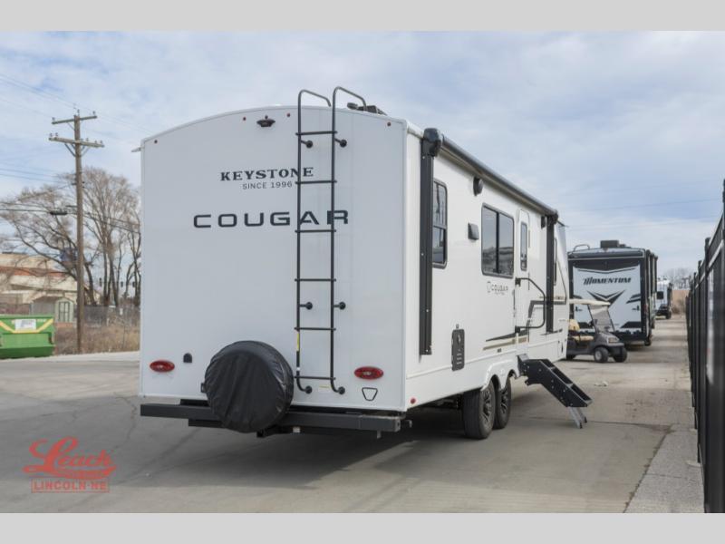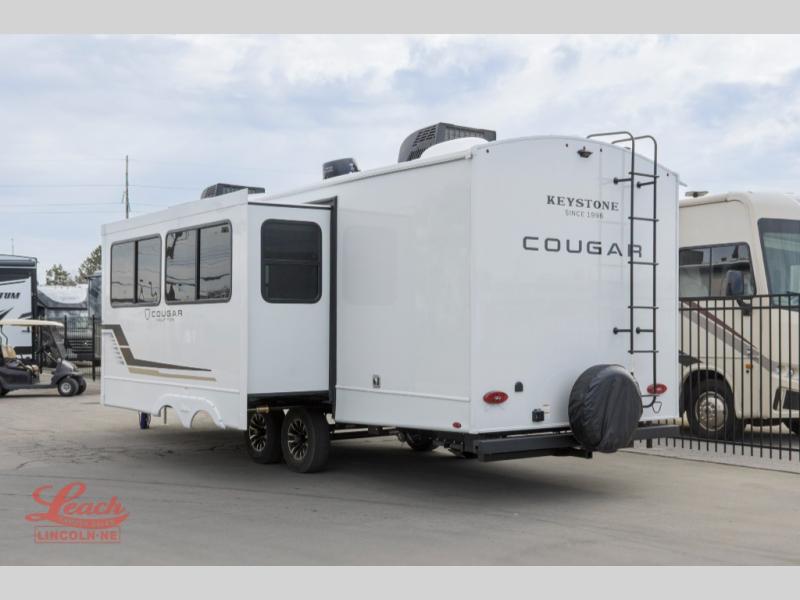 The Keystone Cougar Half-Ton fifth wheel and travel trailers are known as one of America's favorites for a reason! Some of those reasons are the exclusive features that come from Keystone, like the Winegard Air 360+ omni-directional rooftop antenna, the in-floor heating ducts, and the HyperCore composite wall construction with Vixen Fibrogloss high-gloss finish. The Cougar Half-Ton has a Climate Guard protection package with heat-deflecting white sidewalls, two roof attic vents, PEX plumbing and more to enjoy four season camping. Inside, you'll love the dimmable lighting, night roller shades throughout, shower skylight, and bedside USB outlets to keep your electronics charged.