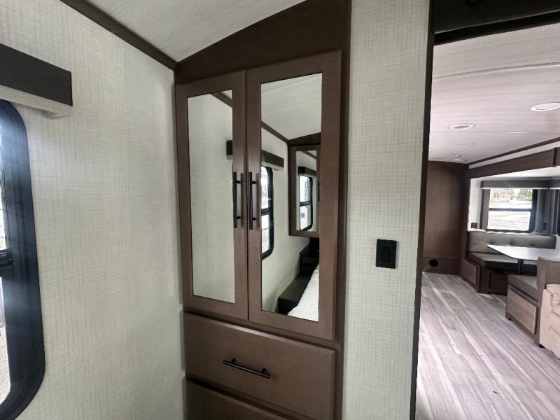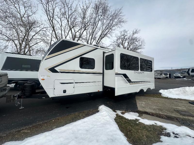 The Keystone Cougar Half-Ton fifth wheel and travel trailers are known as one of America's favorites for a reason! Some of those reasons are the exclusive features that come from Keystone, like the Winegard Air 360+ omni-directional rooftop antenna, the in-floor heating ducts, and the HyperCore composite wall construction with Vixen Fibrogloss high-gloss finish. The Cougar Half-Ton has a Climate Guard protection package with heat-deflecting white sidewalls, two roof attic vents, PEX plumbing and more to enjoy four season camping. Inside, you'll love the dimmable lighting, night roller shades throughout, shower skylight, and bedside USB outlets to keep your electronics charged.