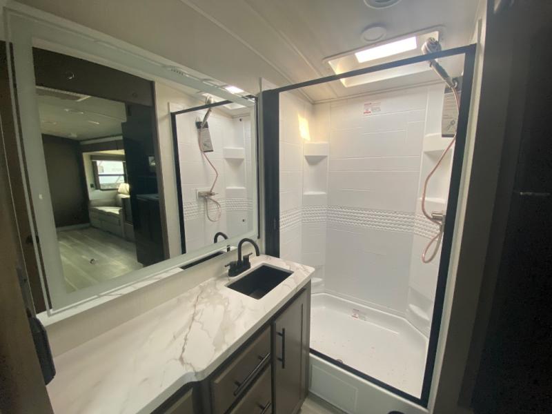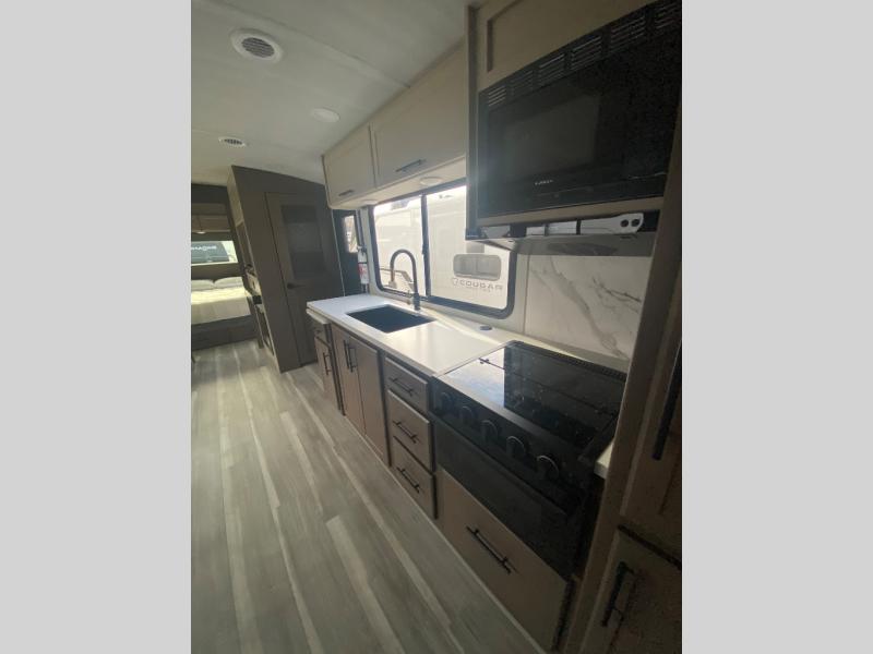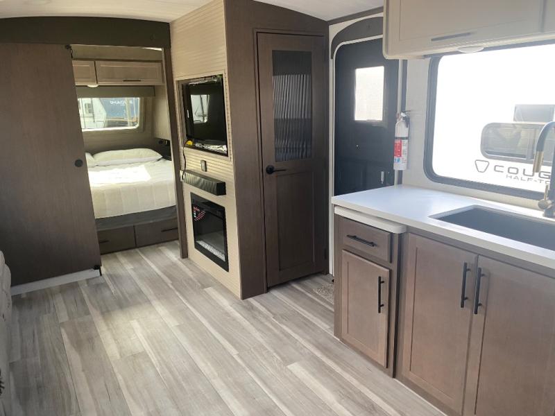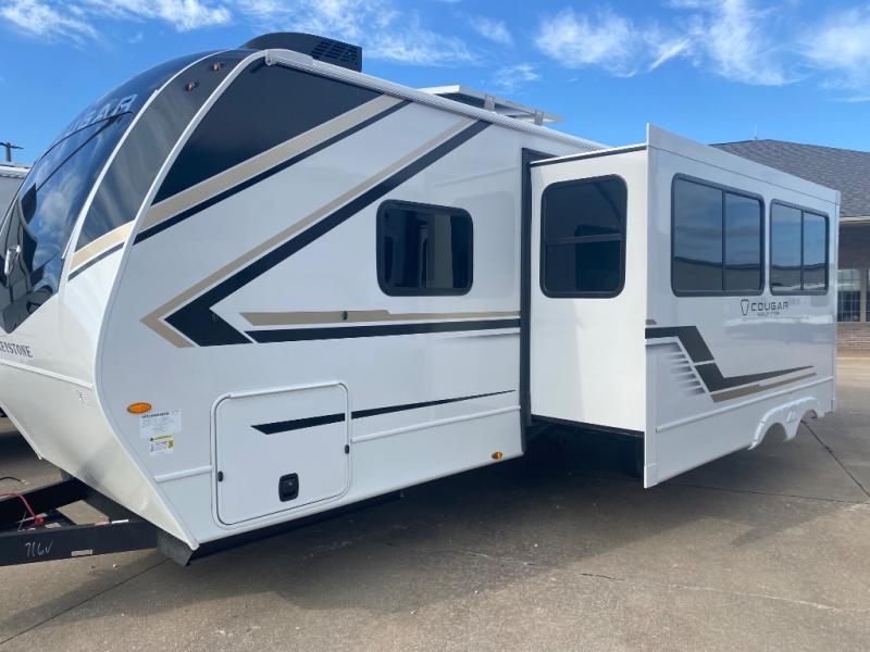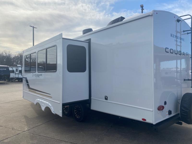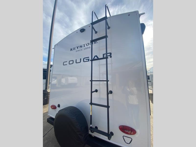 The Keystone Cougar Half-Ton fifth wheel and travel trailers are known as one of America's favorites for a reason! Some of those reasons are the exclusive features that come from Keystone, like the Winegard Air 360+ omni-directional rooftop antenna, the in-floor heating ducts, and the HyperCore composite wall construction with Vixen Fibrogloss high-gloss finish. The Cougar Half-Ton has a Climate Guard protection package with heat-deflecting white sidewalls, two roof attic vents, PEX plumbing and more to enjoy four season camping. Inside, you'll love the dimmable lighting, night roller shades throughout, shower skylight, and bedside USB outlets to keep your electronics charged.
