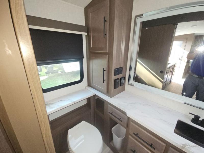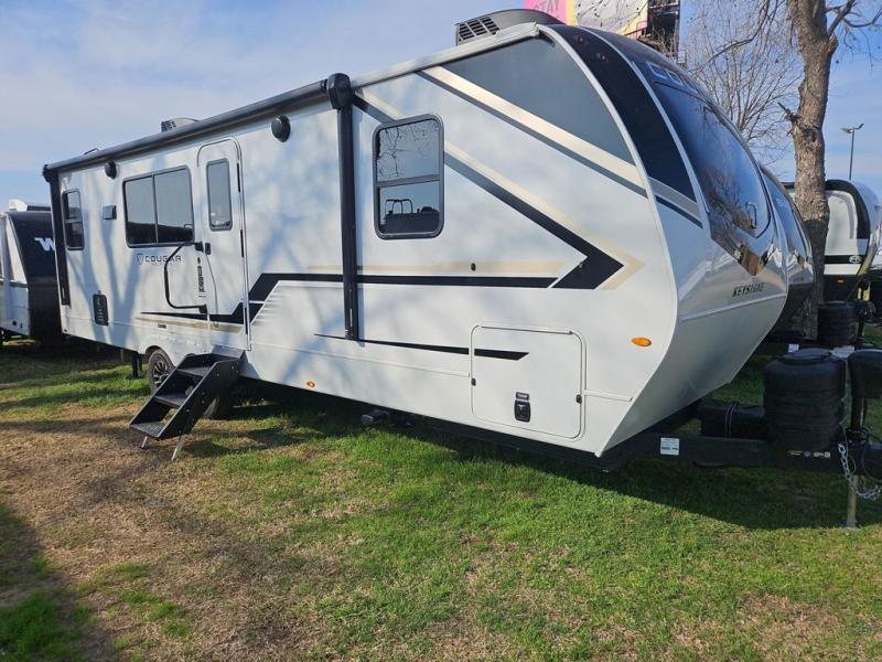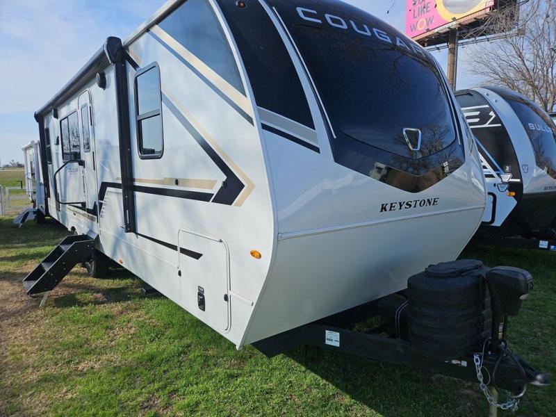 The Keystone Cougar Half-Ton fifth wheel and travel trailers are known as one of America's favorites for a reason! Some of those reasons are the exclusive features that come from Keystone, like the Winegard Air 360+ omni-directional rooftop antenna, the in-floor heating ducts, and the HyperCore composite wall construction with Vixen Fibrogloss high-gloss finish. The Cougar Half-Ton has a Climate Guard protection package with heat-deflecting white sidewalls, two roof attic vents, PEX plumbing and more to enjoy four season camping. Inside, you'll love the dimmable lighting, night roller shades throughout, shower skylight, and bedside USB outlets to keep your electronics charged.