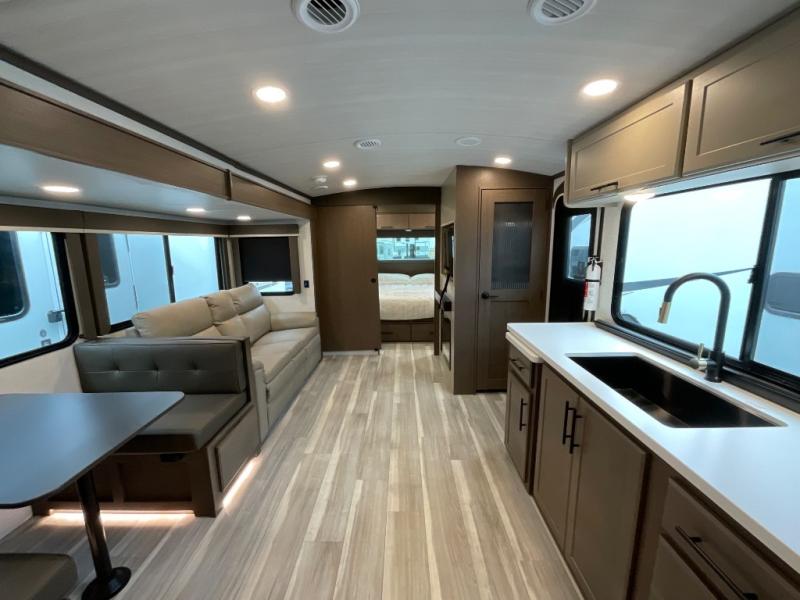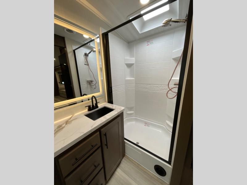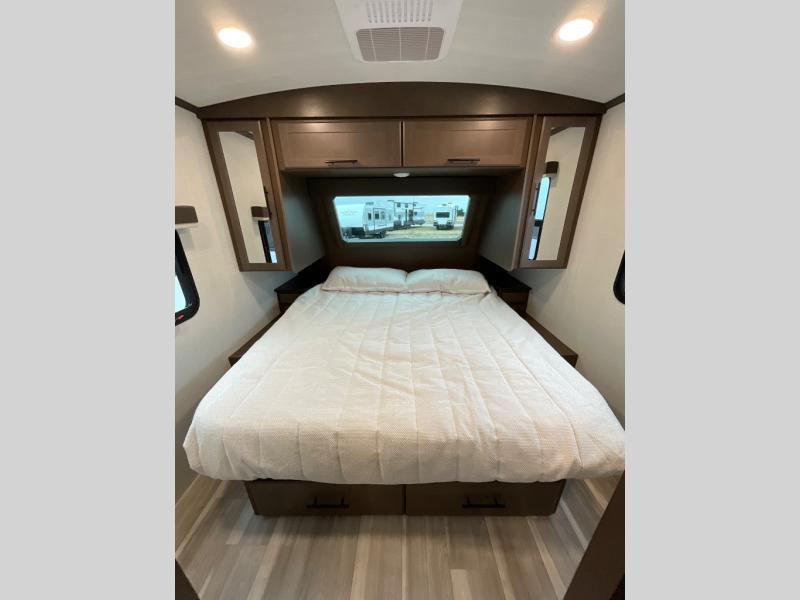 The Keystone Cougar Half-Ton fifth wheel and travel trailers are known as one of America's favorites for a reason! Some of those reasons are the exclusive features that come from Keystone, like the Winegard Air 360+ omni-directional rooftop antenna, the in-floor heating ducts, and the HyperCore composite wall construction with Vixen Fibrogloss high-gloss finish. The Cougar Half-Ton has a Climate Guard protection package with heat-deflecting white sidewalls, two roof attic vents, PEX plumbing and more to enjoy four season camping. Inside, you'll love the dimmable lighting, night roller shades throughout, shower skylight, and bedside USB outlets to keep your electronics charged.