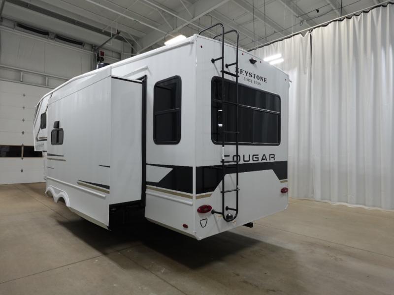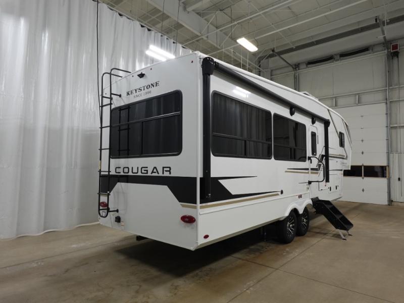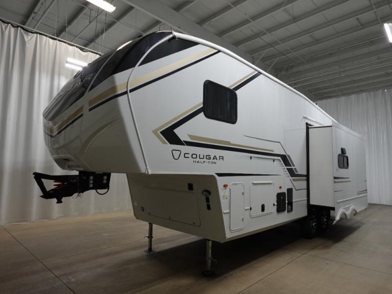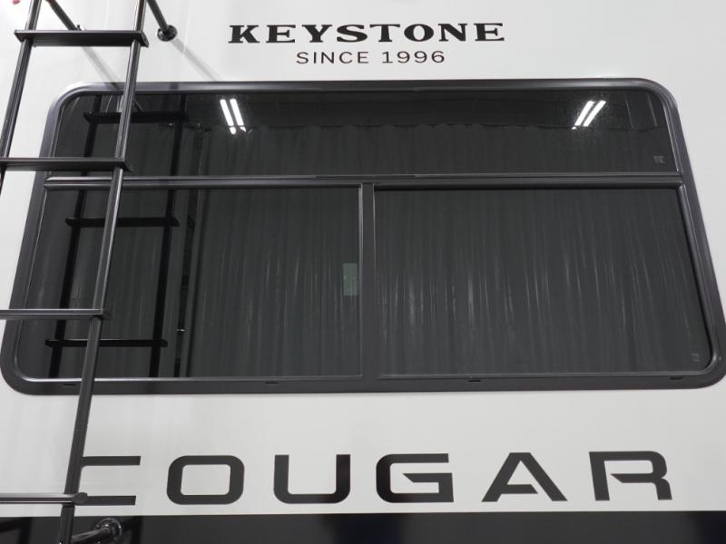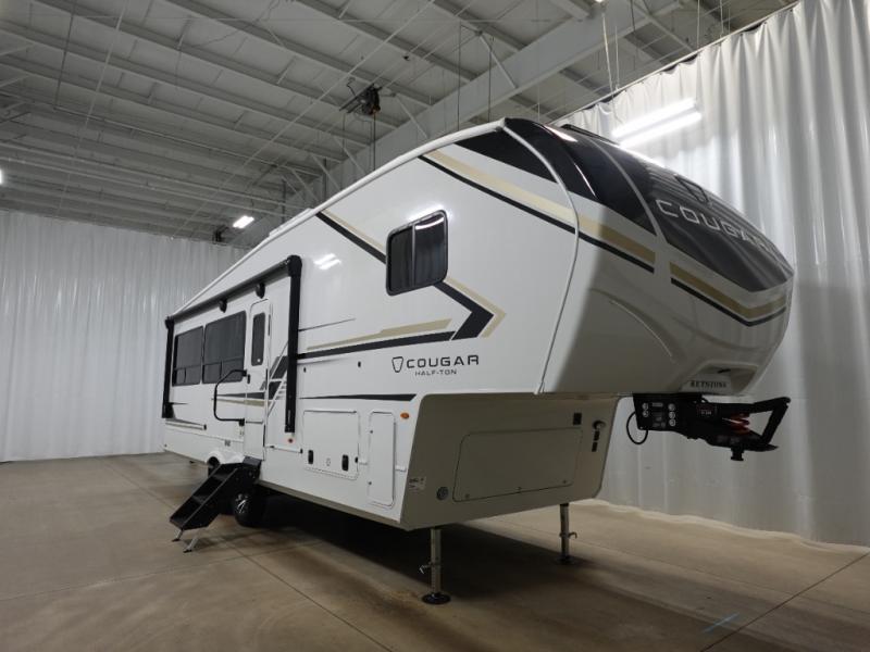 The Keystone Cougar Half-Ton fifth wheel and travel trailers are known as one of America's favorites for a reason! Some of those reasons are the exclusive features that come from Keystone, like the Winegard Air 360+ omni-directional rooftop antenna, the in-floor heating ducts, and the HyperCore composite wall construction with Vixen Fibrogloss high-gloss finish. The Cougar Half-Ton has a Climate Guard protection package with heat-deflecting white sidewalls, two roof attic vents, PEX plumbing and more to enjoy four season camping. Inside, you'll love the dimmable lighting, night roller shades throughout, shower skylight, and bedside USB outlets to keep your electronics charged.