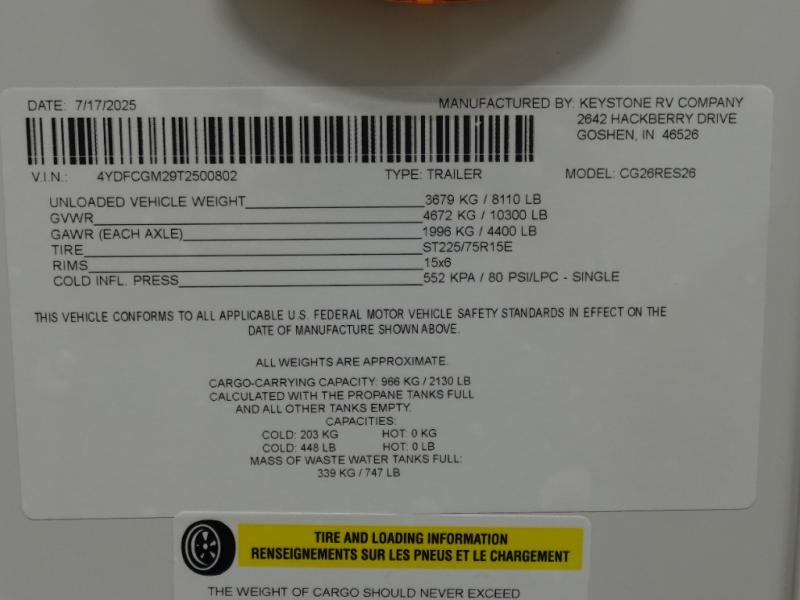 New 2026 Keystone RV Cougar Half-Ton 26RES Fifth Wheel