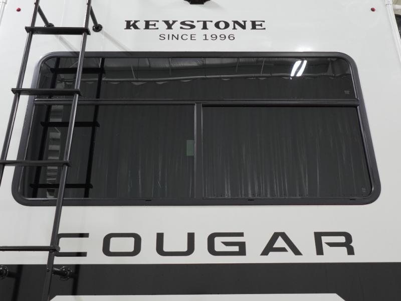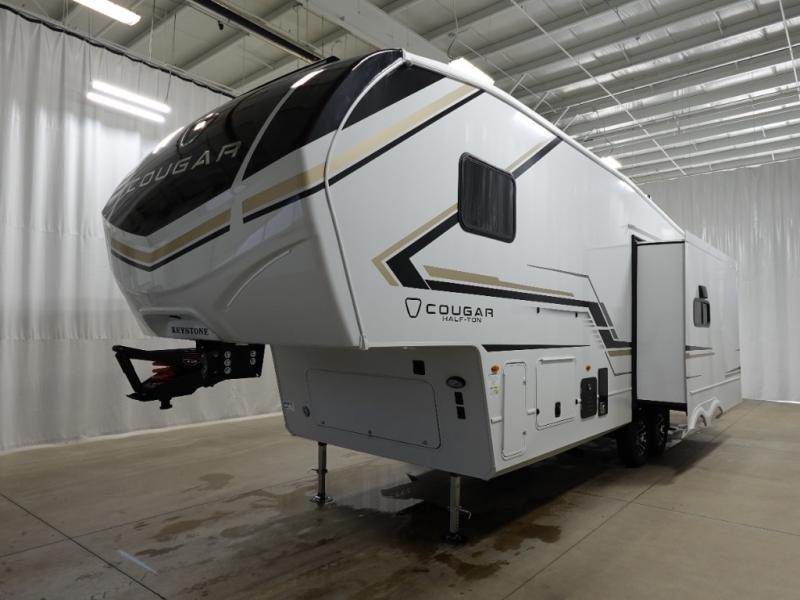 The Keystone Cougar Half-Ton fifth wheel and travel trailers are known as one of America's favorites for a reason! Some of those reasons are the exclusive features that come from Keystone, like the Winegard Air 360+ omni-directional rooftop antenna, the in-floor heating ducts, and the Hyper Deck flooring. The Cougar Half-Ton has a Climate Guard protection package to keep you safe during inclement weather, along with two roof attic vents, PEX plumbing and more. Use the 21" Furrion range with Piezo ignition to create all of those familiar meals from home, and enjoy endless hot showers with the Girard tankless on-demand water heater!
