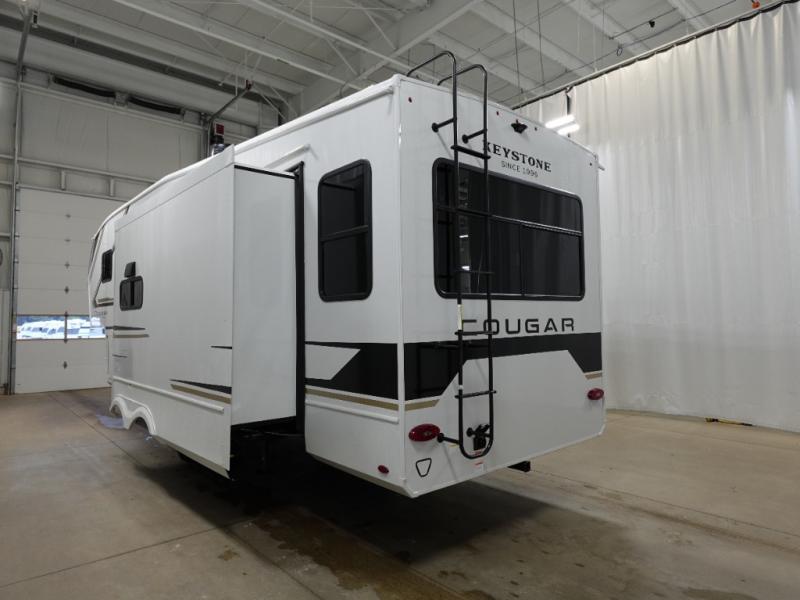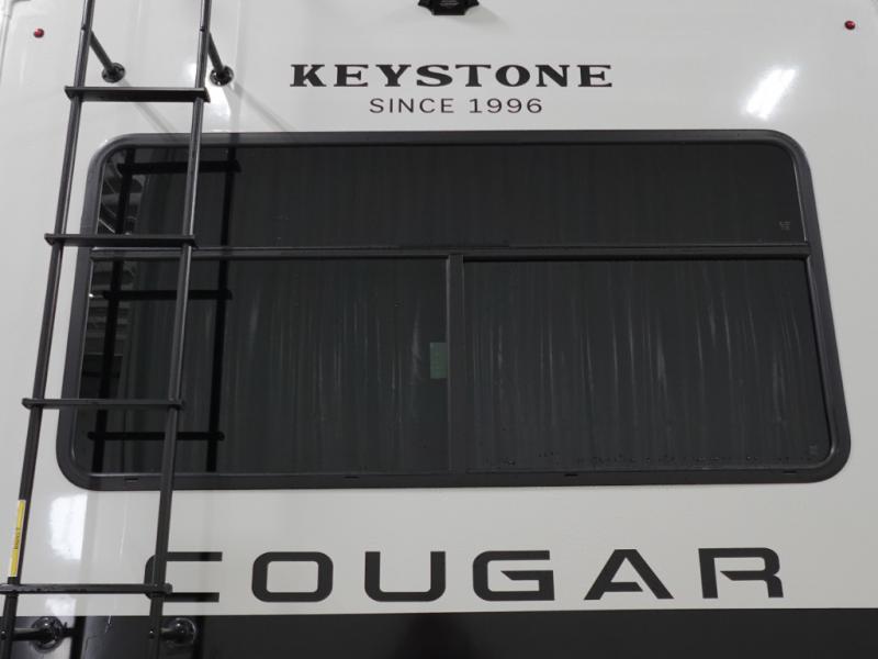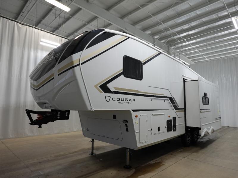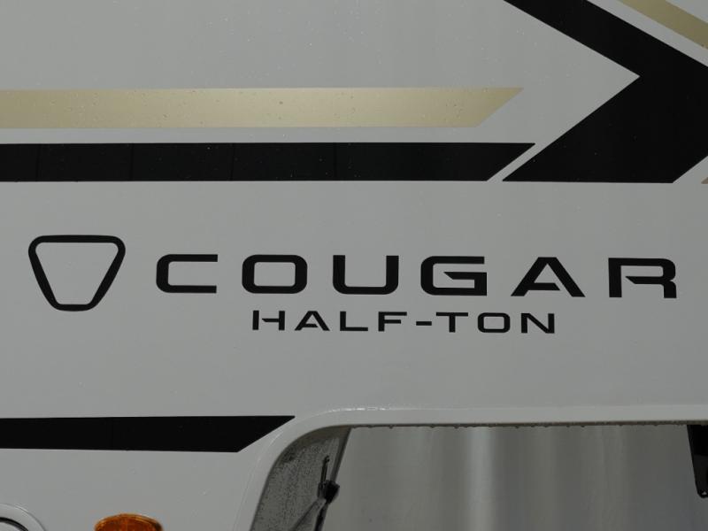 The Keystone Cougar Half-Ton fifth wheel and travel trailers are known as one of America's favorites for a reason! Some of those reasons are the exclusive features that come from Keystone, like the Winegard Air 360+ omni-directional rooftop antenna, the in-floor heating ducts, and the Hyper Deck flooring. The Cougar Half-Ton has a Climate Guard protection package to keep you safe during inclement weather, along with two roof attic vents, PEX plumbing and more. Use the 21" Furrion range with Piezo ignition to create all of those familiar meals from home, and enjoy endless hot showers with the Girard tankless on-demand water heater!