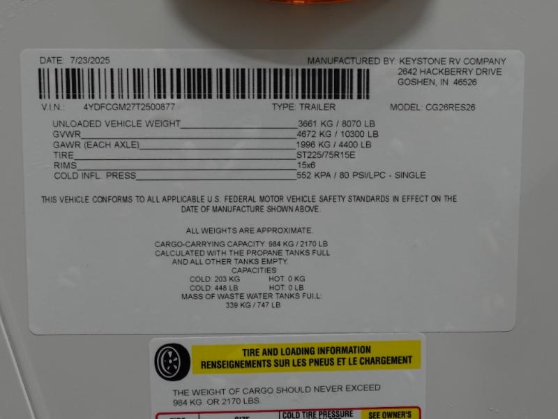 New 2026 Keystone RV Cougar Half-Ton 26RES Fifth Wheel