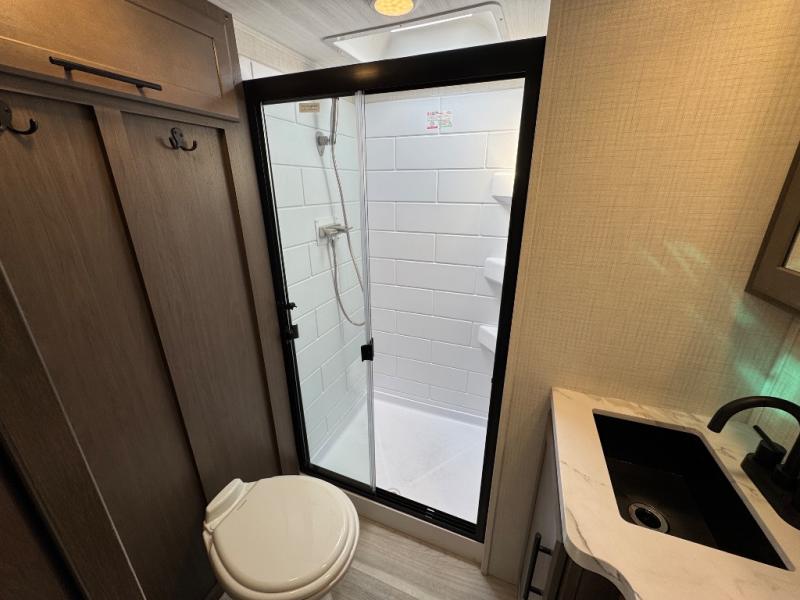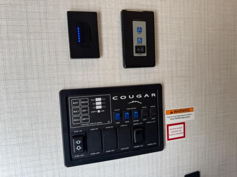 The Keystone Cougar Half-Ton fifth wheel and travel trailers are known as one of America's favorites for a reason! Some of those reasons are the exclusive features that come from Keystone, like the Winegard Air 360+ omni-directional rooftop antenna, the in-floor heating ducts, and the HyperCore composite wall construction with Vixen Fibrogloss high-gloss finish. The Cougar Half-Ton has a Climate Guard protection package with heat-deflecting white sidewalls, two roof attic vents, PEX plumbing and more to enjoy four season camping. Inside, you'll love the dimmable lighting, night roller shades throughout, shower skylight, and bedside USB outlets to keep your electronics charged.