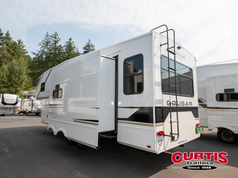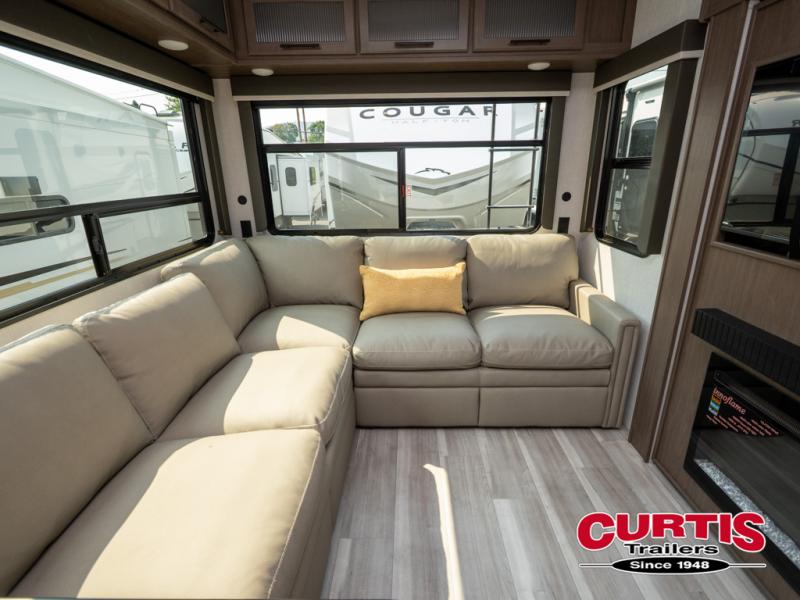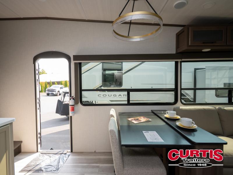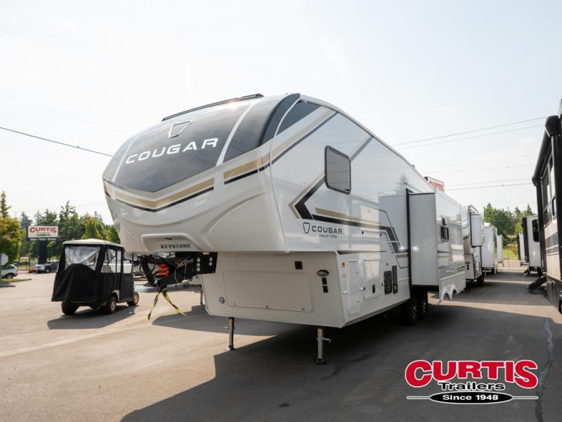 The Keystone Cougar Half-Ton fifth wheel and travel trailers are known as one of America's favorites for a reason! Some of those reasons are the exclusive features that come from Keystone, like the Winegard Air 360+ omni-directional rooftop antenna, the in-floor heating ducts, and the HyperCore composite wall construction with Vixen Fibrogloss high-gloss finish. The Cougar Half-Ton has a Climate Guard protection package with heat-deflecting white sidewalls, two roof attic vents, PEX plumbing and more to enjoy four season camping. Inside, you'll love the dimmable lighting, night roller shades throughout, shower skylight, and bedside USB outlets to keep your electronics charged.