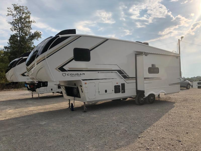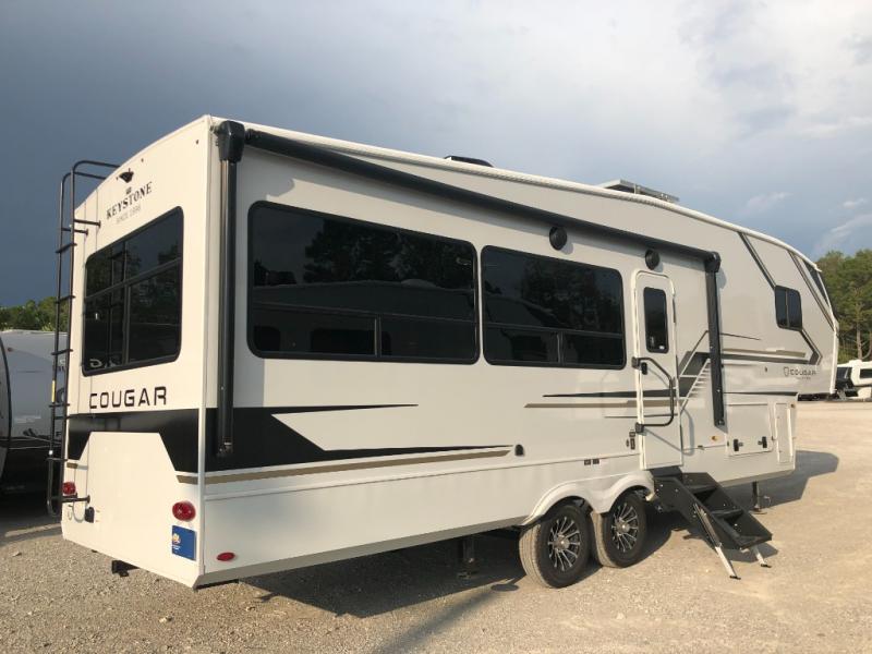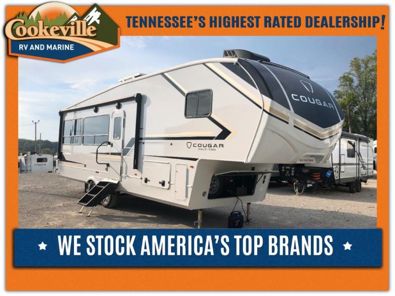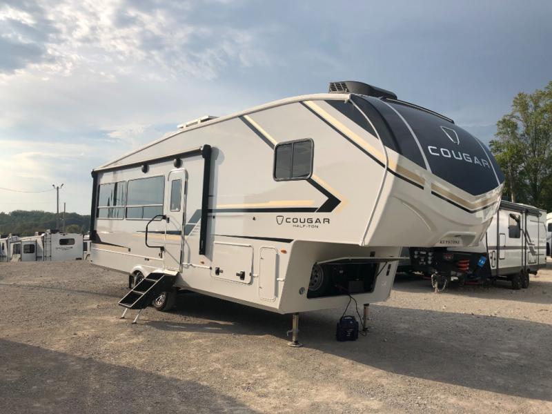 The Keystone Cougar Half-Ton fifth wheel and travel trailers are known as one of America's favorites for a reason! Some of those reasons are the exclusive features that come from Keystone, like the Winegard Air 360+ omni-directional rooftop antenna, the in-floor heating ducts, and the HyperCore composite wall construction with Vixen Fibrogloss high-gloss finish. The Cougar Half-Ton has a Climate Guard protection package with heat-deflecting white sidewalls, two roof attic vents, PEX plumbing and more to enjoy four season camping. Inside, you'll love the dimmable lighting, night roller shades throughout, shower skylight, and bedside USB outlets to keep your electronics charged.
