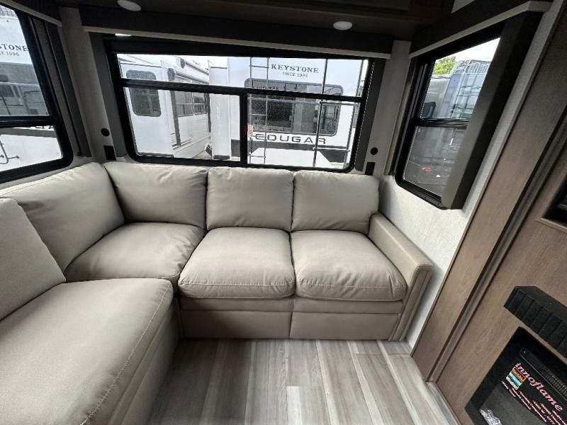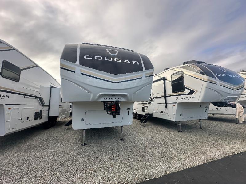 The Keystone Cougar Half-Ton fifth wheel and travel trailers are known as one of America's favorites for a reason! Some of those reasons are the exclusive features that come from Keystone, like the Winegard Air 360+ omni-directional rooftop antenna, the in-floor heating ducts, and the HyperCore composite wall construction with Vixen Fibrogloss high-gloss finish. The Cougar Half-Ton has a Climate Guard protection package with heat-deflecting white sidewalls, two roof attic vents, PEX plumbing and more to enjoy four season camping. Inside, you'll love the dimmable lighting, night roller shades throughout, shower skylight, and bedside USB outlets to keep your electronics charged.