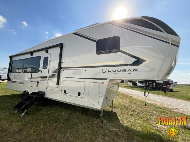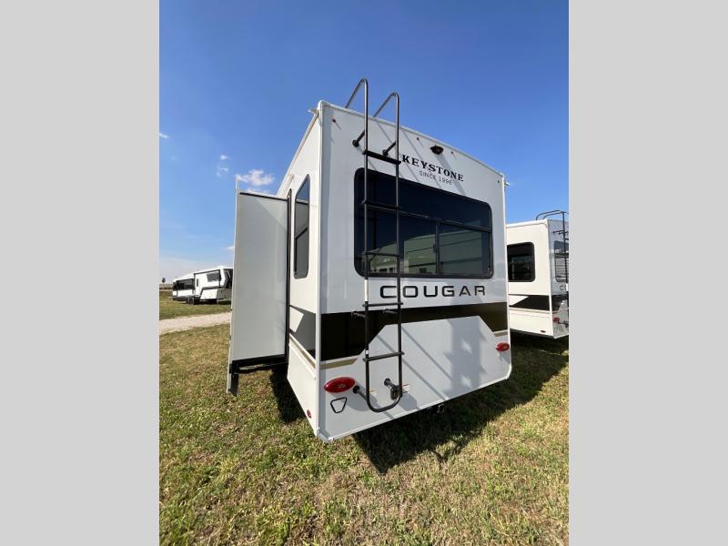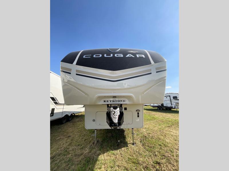 The Keystone Cougar Half-Ton fifth wheel and travel trailers are known as one of America's favorites for a reason! Some of those reasons are the exclusive features that come from Keystone, like the Winegard Air 360+ omni-directional rooftop antenna, the in-floor heating ducts, and the HyperCore composite wall construction with Vixen Fibrogloss high-gloss finish. The Cougar Half-Ton has a Climate Guard protection package with heat-deflecting white sidewalls, two roof attic vents, PEX plumbing and more to enjoy four season camping. Inside, you'll love the dimmable lighting, night roller shades throughout, shower skylight, and bedside USB outlets to keep your electronics charged.