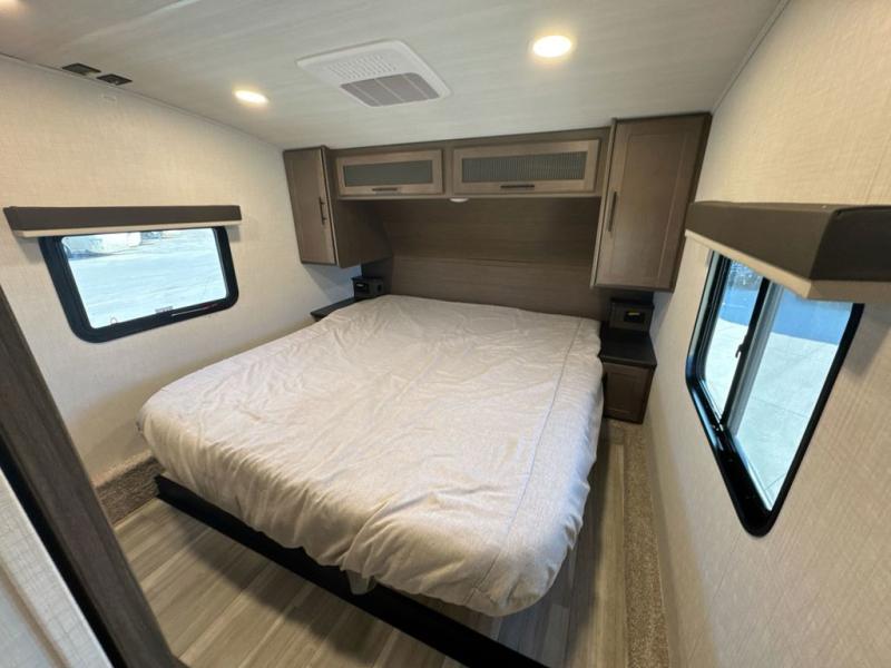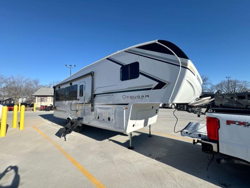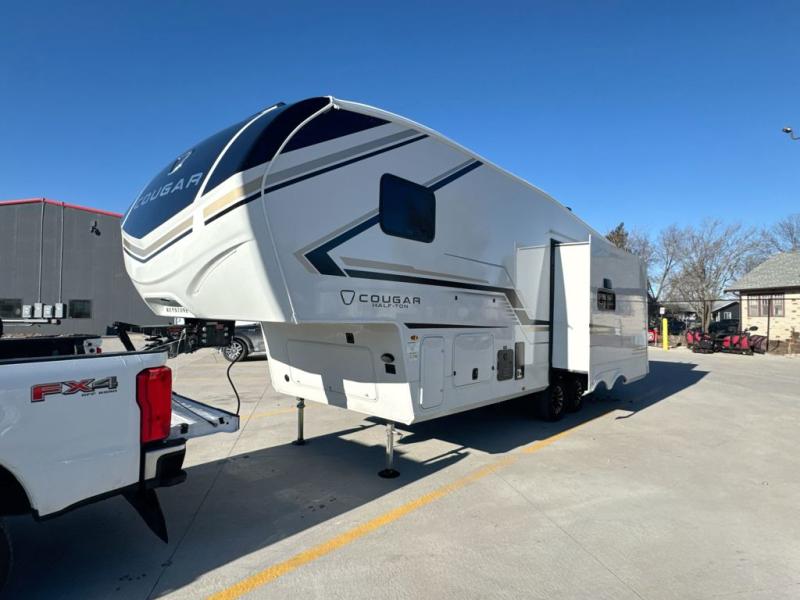 The Keystone Cougar Half-Ton fifth wheel and travel trailers are known as one of America's favorites for a reason! Some of those reasons are the exclusive features that come from Keystone, like the Winegard Air 360+ omni-directional rooftop antenna, the in-floor heating ducts, and the HyperCore composite wall construction with Vixen Fibrogloss high-gloss finish. The Cougar Half-Ton has a Climate Guard protection package with heat-deflecting white sidewalls, two roof attic vents, PEX plumbing and more to enjoy four season camping. Inside, you'll love the dimmable lighting, night roller shades throughout, shower skylight, and bedside USB outlets to keep your electronics charged.