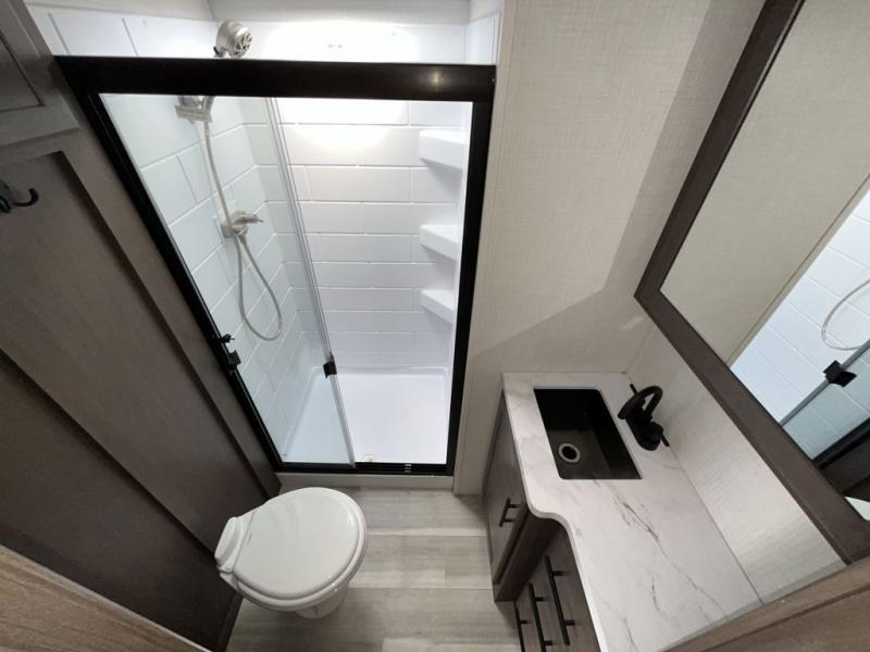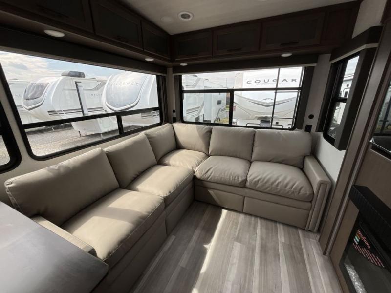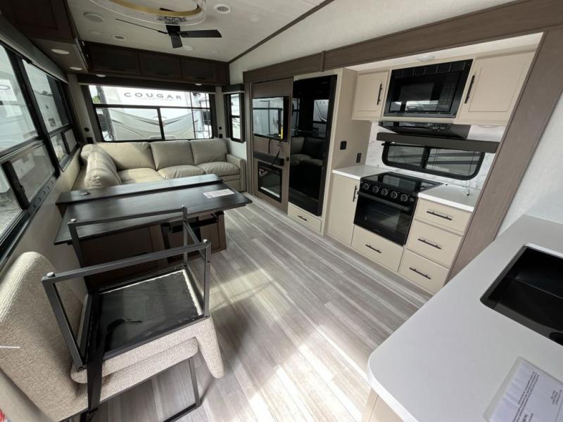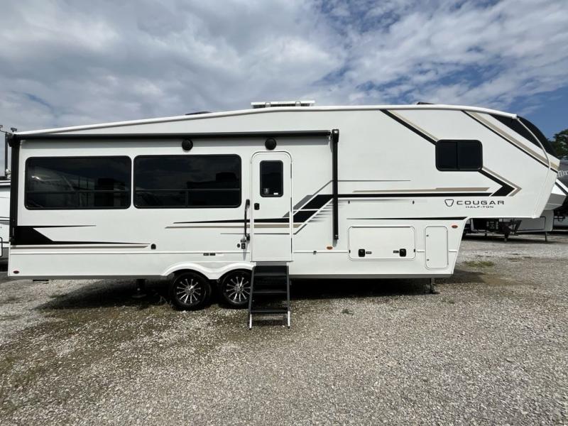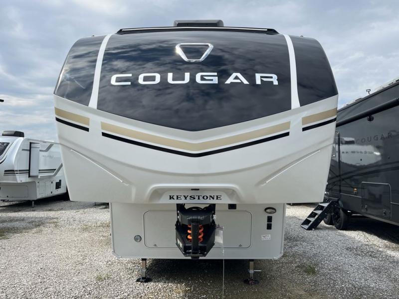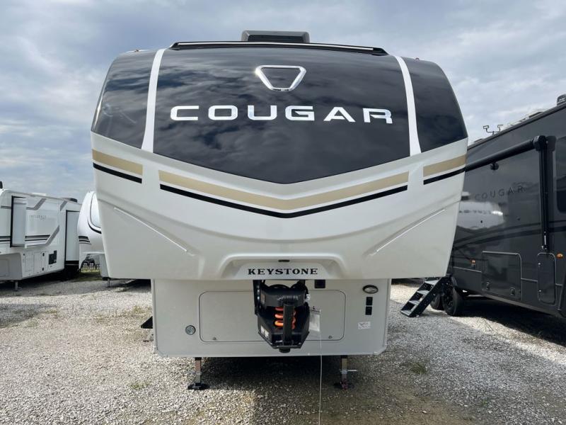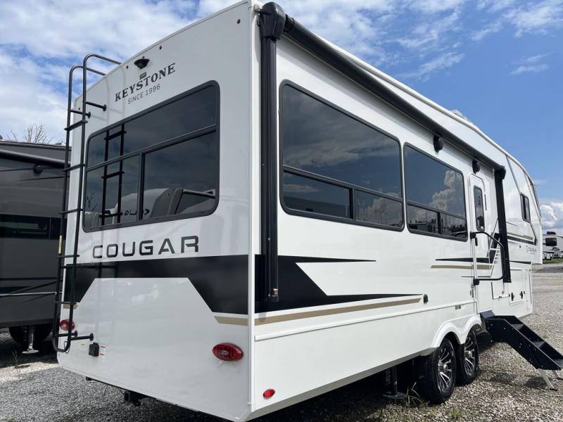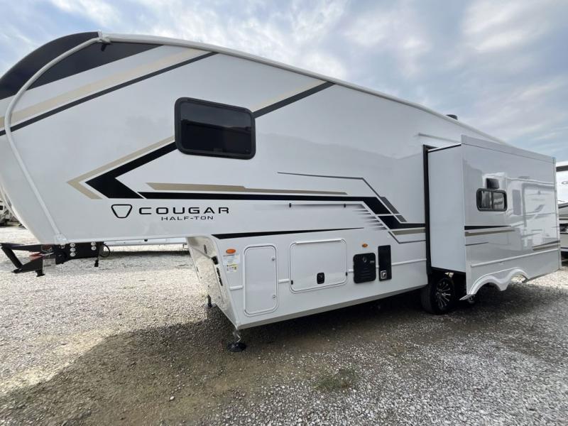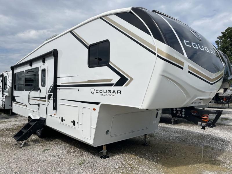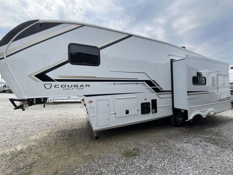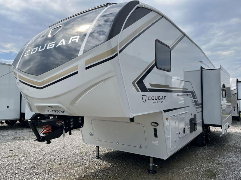 The Keystone Cougar Half-Ton fifth wheel and travel trailers are known as one of America's favorites for a reason! Some of those reasons are the exclusive features that come from Keystone, like the Winegard Air 360+ omni-directional rooftop antenna, the in-floor heating ducts, and the HyperCore composite wall construction with Vixen Fibrogloss high-gloss finish. The Cougar Half-Ton has a Climate Guard protection package with heat-deflecting white sidewalls, two roof attic vents, PEX plumbing and more to enjoy four season camping. Inside, you'll love the dimmable lighting, night roller shades throughout, shower skylight, and bedside USB outlets to keep your electronics charged.