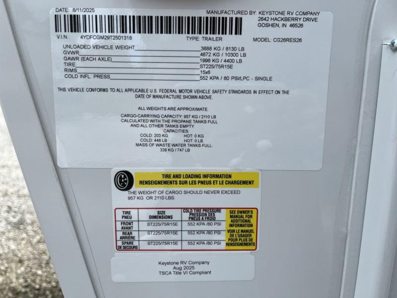 New 2026 Keystone RV Cougar Half-Ton 26RES Fifth Wheel