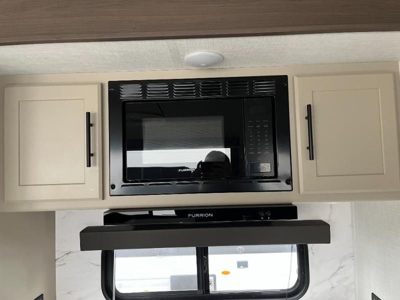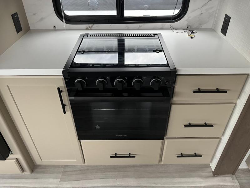 The Cougar Half-Ton 26RES boasts a well-equipped kitchen that makes cooking easy and enjoyable. With a three-burner cooktop, oven, microwave, spacious refrigerator, and generous countertop space, you’ll have everything you need to prepare meals for the whole family. Plenty of cabinetry and a thoughtful layout keep your cookware, dishes, and pantry essentials organized and within reach.