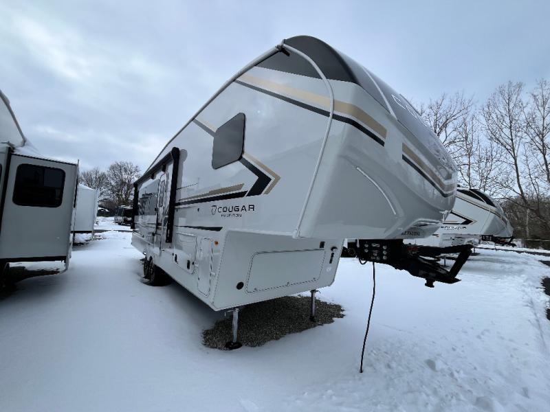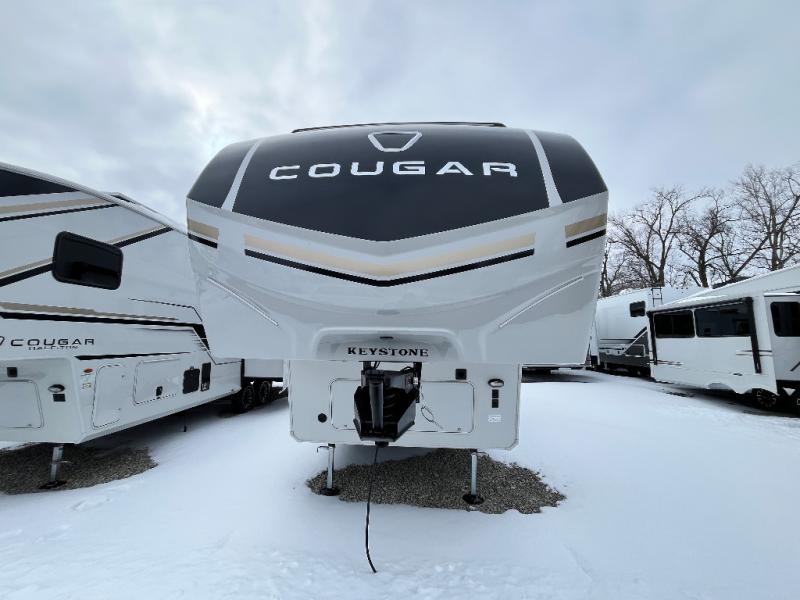 The Keystone Cougar Half-Ton fifth wheel and travel trailers are known as one of America's favorites for a reason! Some of those reasons are the exclusive features that come from Keystone, like the Winegard Air 360+ omni-directional rooftop antenna, the in-floor heating ducts, and the HyperCore composite wall construction with Vixen Fibrogloss high-gloss finish. The Cougar Half-Ton has a Climate Guard protection package with heat-deflecting white sidewalls, two roof attic vents, PEX plumbing and more to enjoy four season camping. Inside, you'll love the dimmable lighting, night roller shades throughout, shower skylight, and bedside USB outlets to keep your electronics charged.